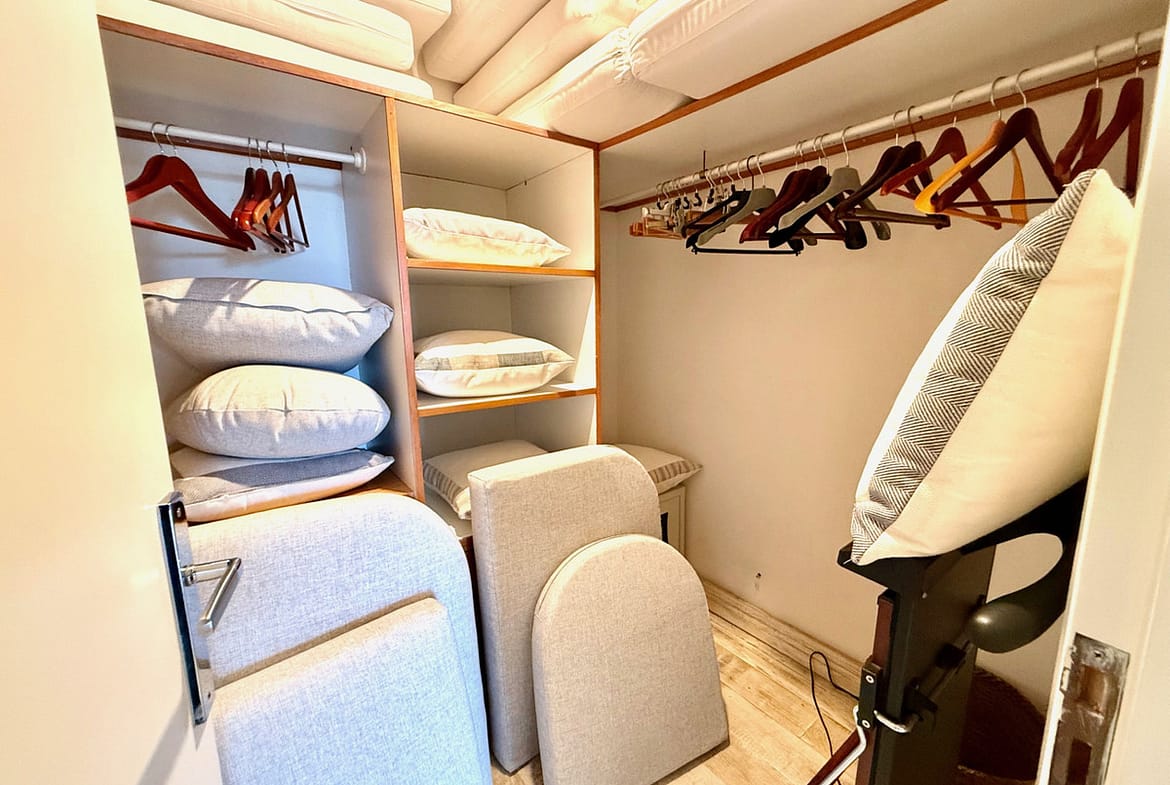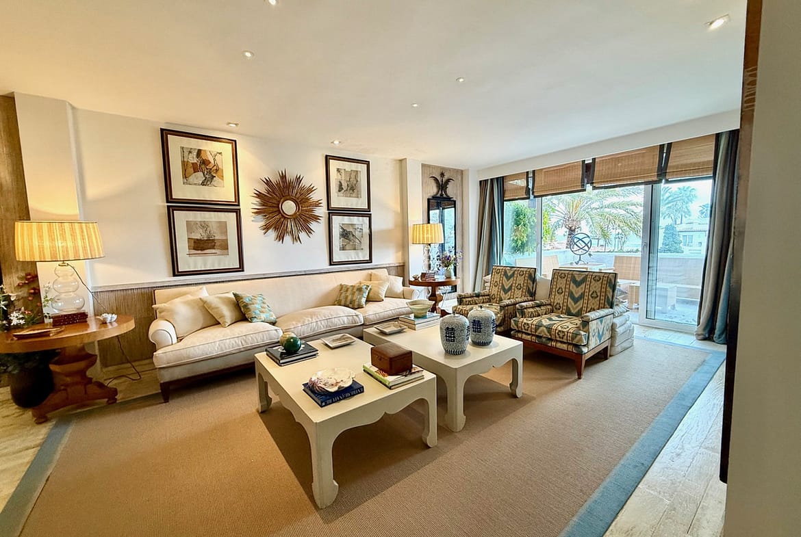 This special apartment has a terrace of about 10m2 for a dining table for a big family just in front the modernised living room with it s open kitchen and dining area', all very light colours and a very nicely refurbished floors all over the apartment.