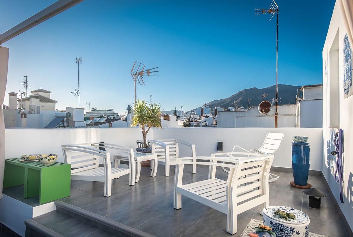 NEWLY RENOVATED TOP FLOOR APARTMENT IN THE HEART OF THE OLD TOWN OF ESTEPONA WITH A LARGE ROOF TERRACE