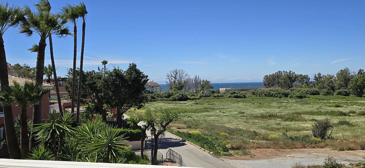 This first-floor duplex penthouse offers beautiful sea views over open fields. It is a top-quality, spacious apartment with marble throughout. An elegant entrance leads to an open lounge and dining area, complete with a fireplace and high ceilings. The living room opens onto a large terrace with stunning sea views.