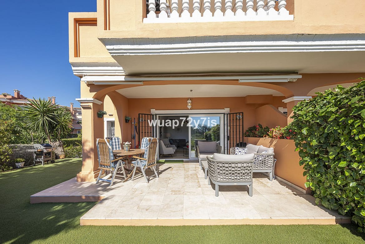 This beautifully presented 2-bedroom, 2-bathroom ground floor apartment is located in the exclusive Park Beach community, just steps away from the Mediterranean. Perfectly positioned as a corner unit, it enjoys exceptional privacy, a unique wrap-around garden, and panoramic views stretching across the sea and Gibraltar.