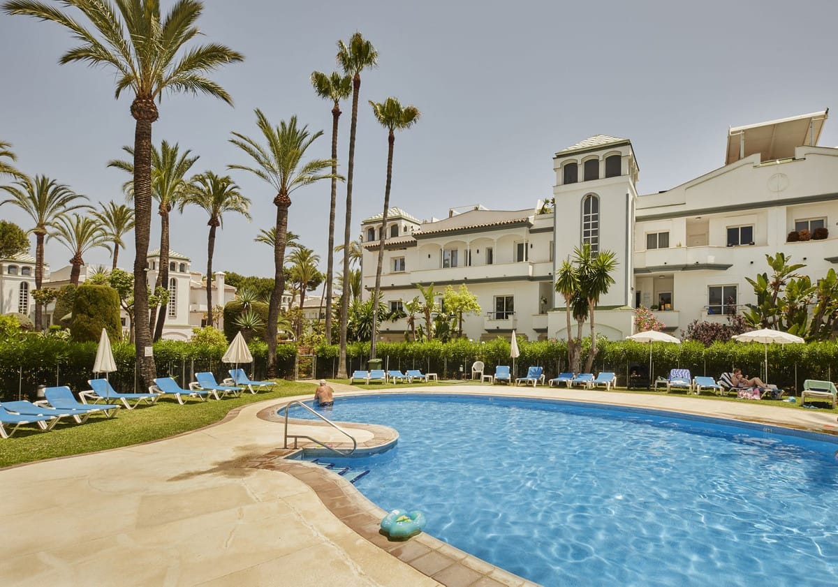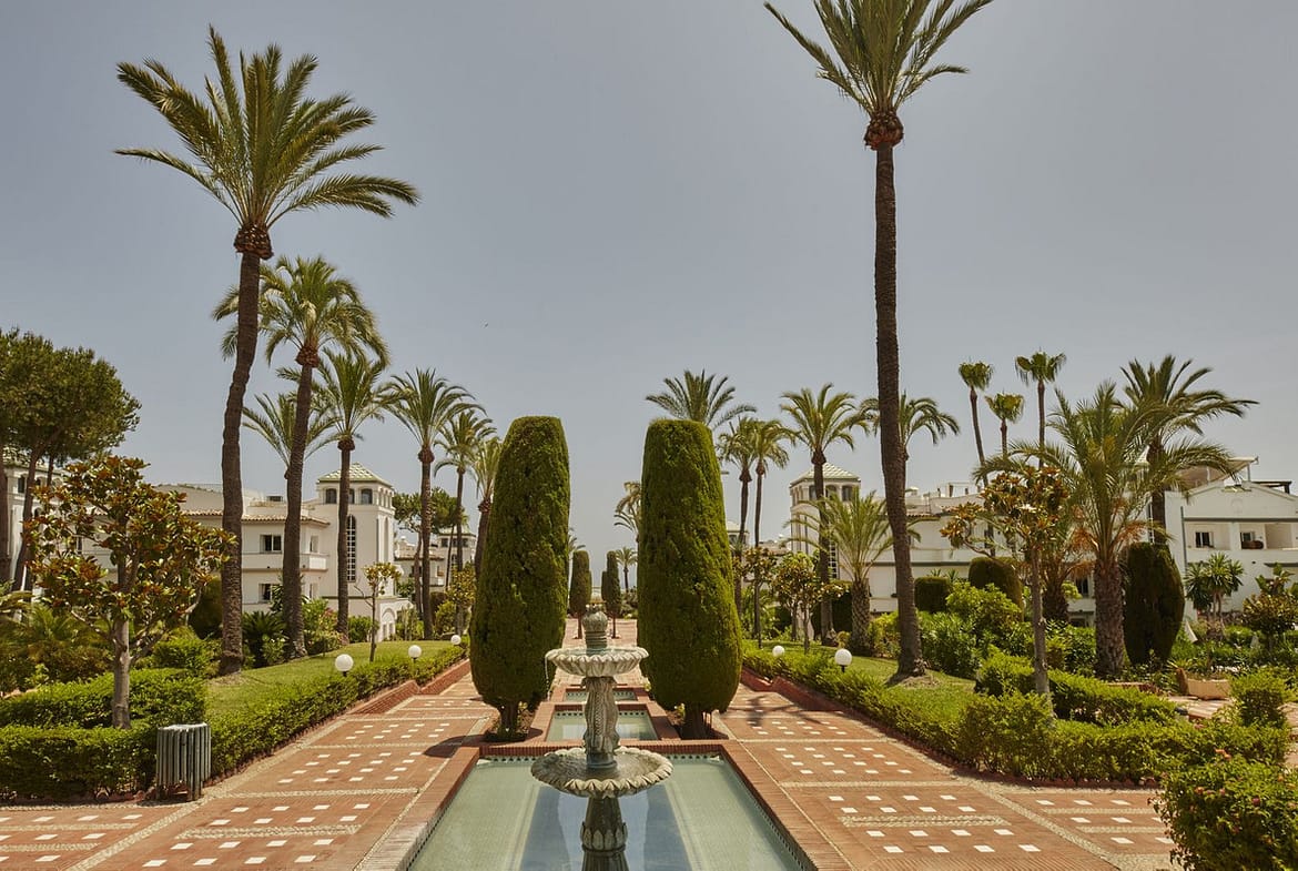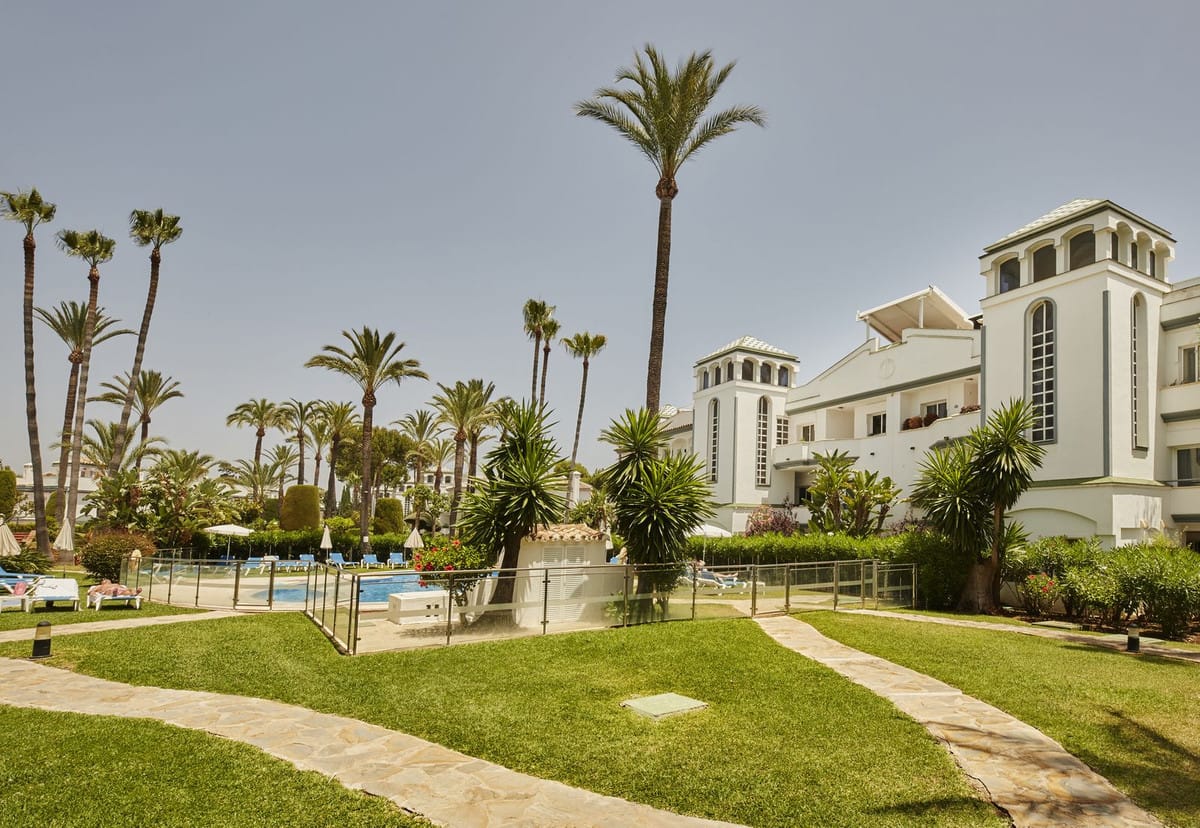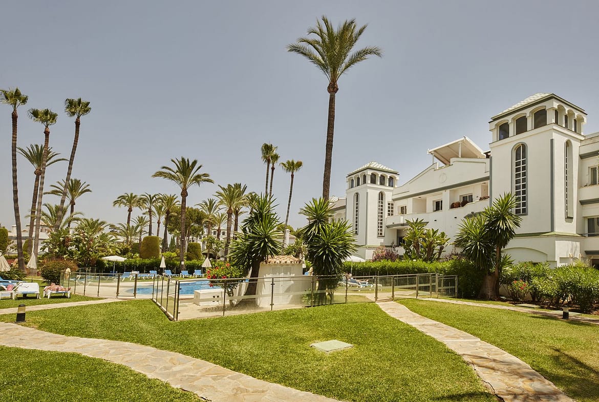 The apartment itself is a two-bedroom unit with a spacious living room and a terrace facing south, overlooking the lovely gardens where you can hear birds singing. The urbanization is stylish, Andalusian, and very well-maintained.