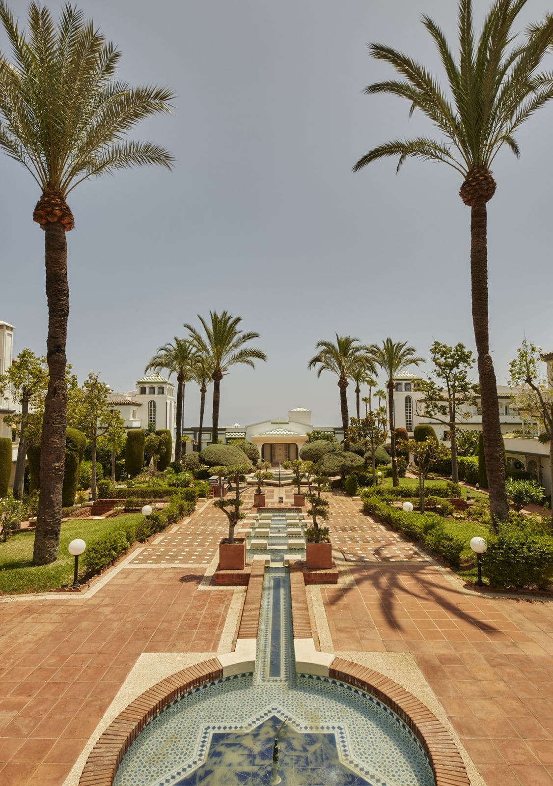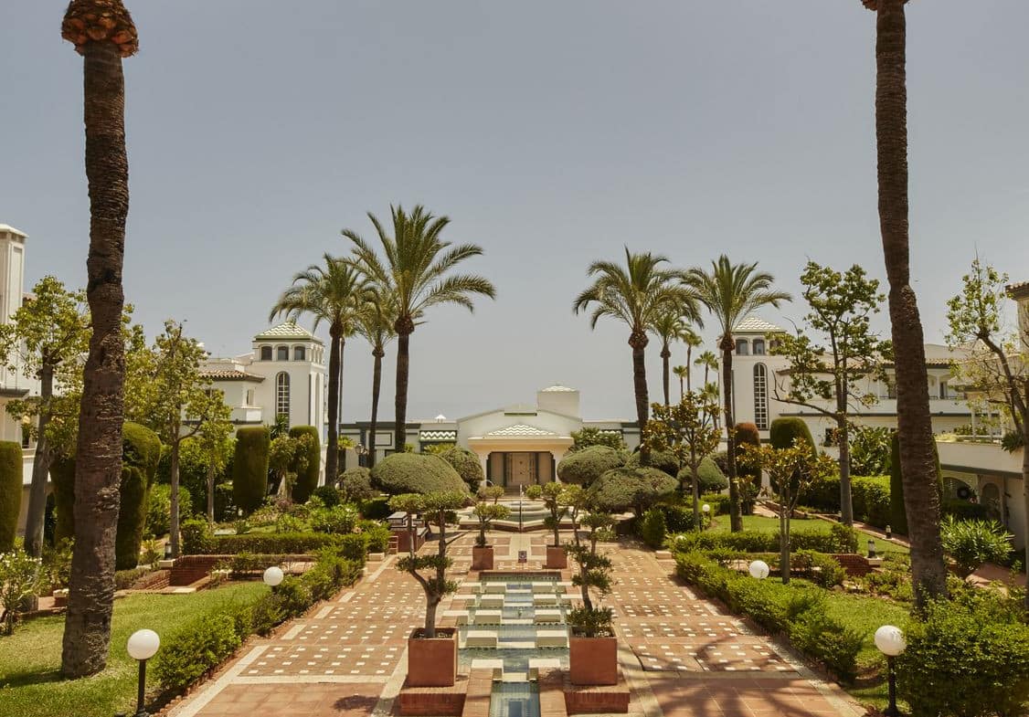 It features two swimming pools, a gym, a restaurant, and beautifully maintained, mature gardens.