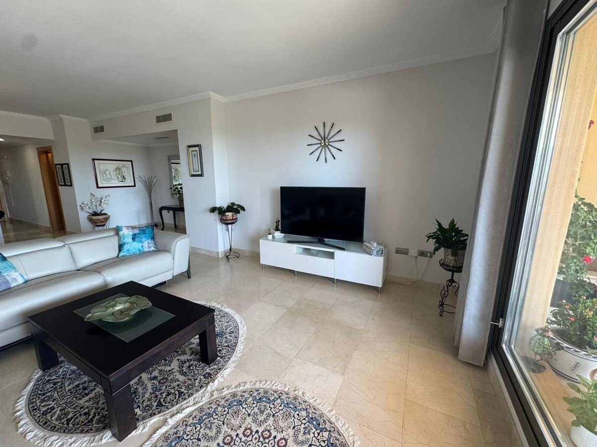 The complex itself is set within stunning landscaped surroundings and includes three swimming pools (two large and one infant pool), all framed by tropical gardens with breathtaking views across the Mediterranean Sea and nearby mountains. The apartment also benefits from a large underground parking space with storage, accessible by lift or stairs.
