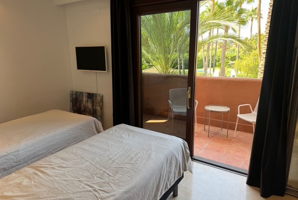 Located in the sought-after beachfront community on Estepona’s prestigious New Golden Mile, this elegant 2-bedroom, 2-bathroom apartment offers a luxurious coastal lifestyle with direct beach access and top-tier amenities. Walking distance to the vibrant Estepona town center with its bars, restaurants and shops. Boasting a south-east orientation, the property enjoys abundant natural light throughout the day and offers partial sea views from its spacious 20m² private terrace – perfect for al fresco dining or relaxing in the Mediterranean breeze. There is a garage space and store room included.