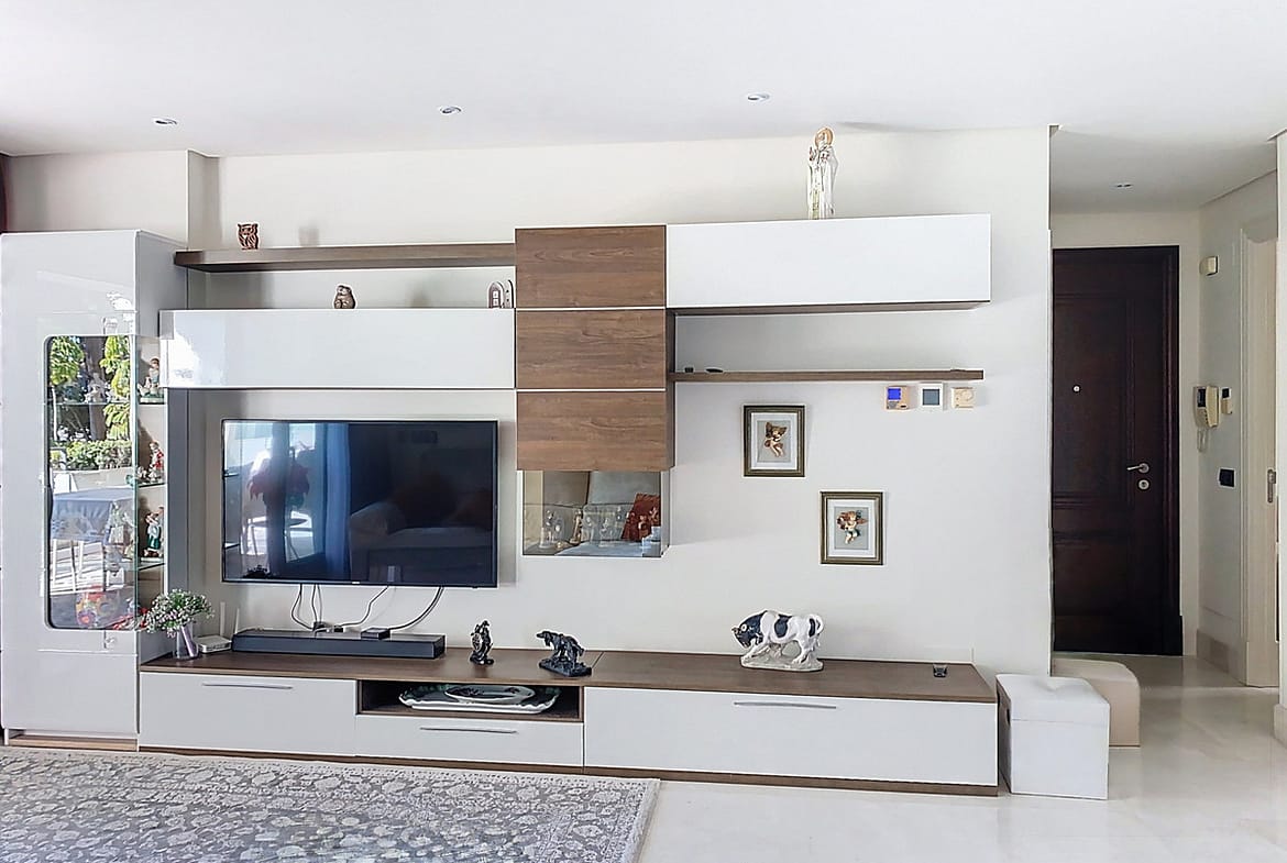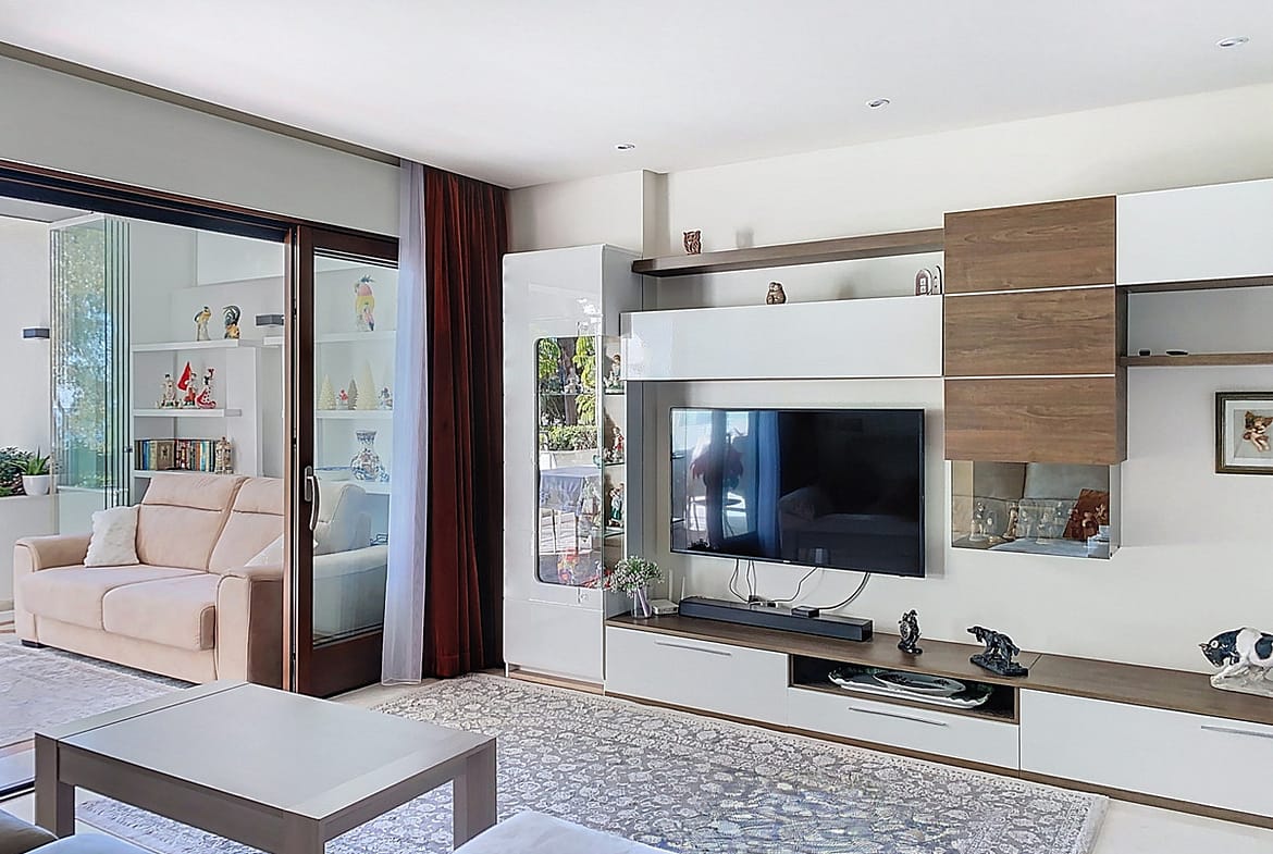 The interior stands out for its high-quality finishes and meticulous construction: acoustic insulation between units, electric shutters, REAL BIANCO cream marble floors, air conditioning, KONNEX home automation system, electric underfloor heating, and large windows that maximize natural light and views. The entire space exudes a sense of timeless elegance and well-being.