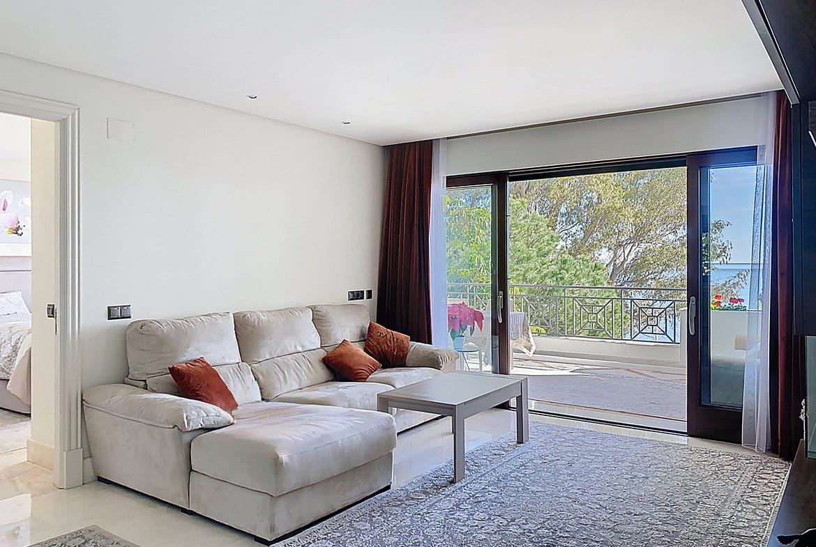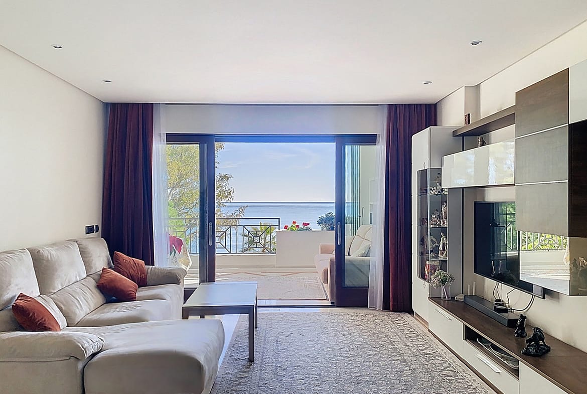 Boasting breathtaking frontal sea views that reach as far as Gibraltar and the African coast, and with direct access to the beach, this exclusive frontline apartment is located in the prestigious Doncella Beach development, in the sought-after Seghers area of Estepona. Situated next to Playa del Cristo, one of the city’s finest beaches, and directly connected to the promenade, it is within pleasant walking distance of the marina and the town center.