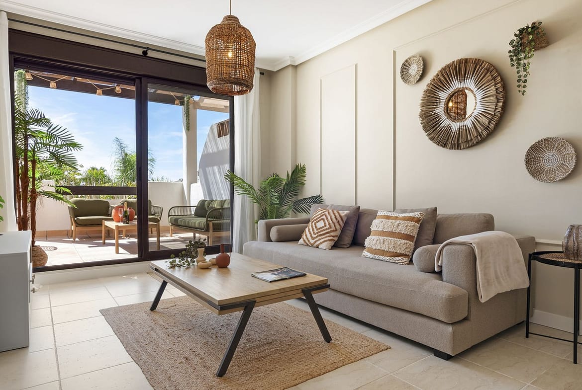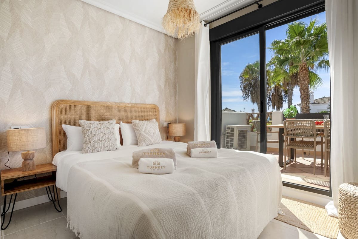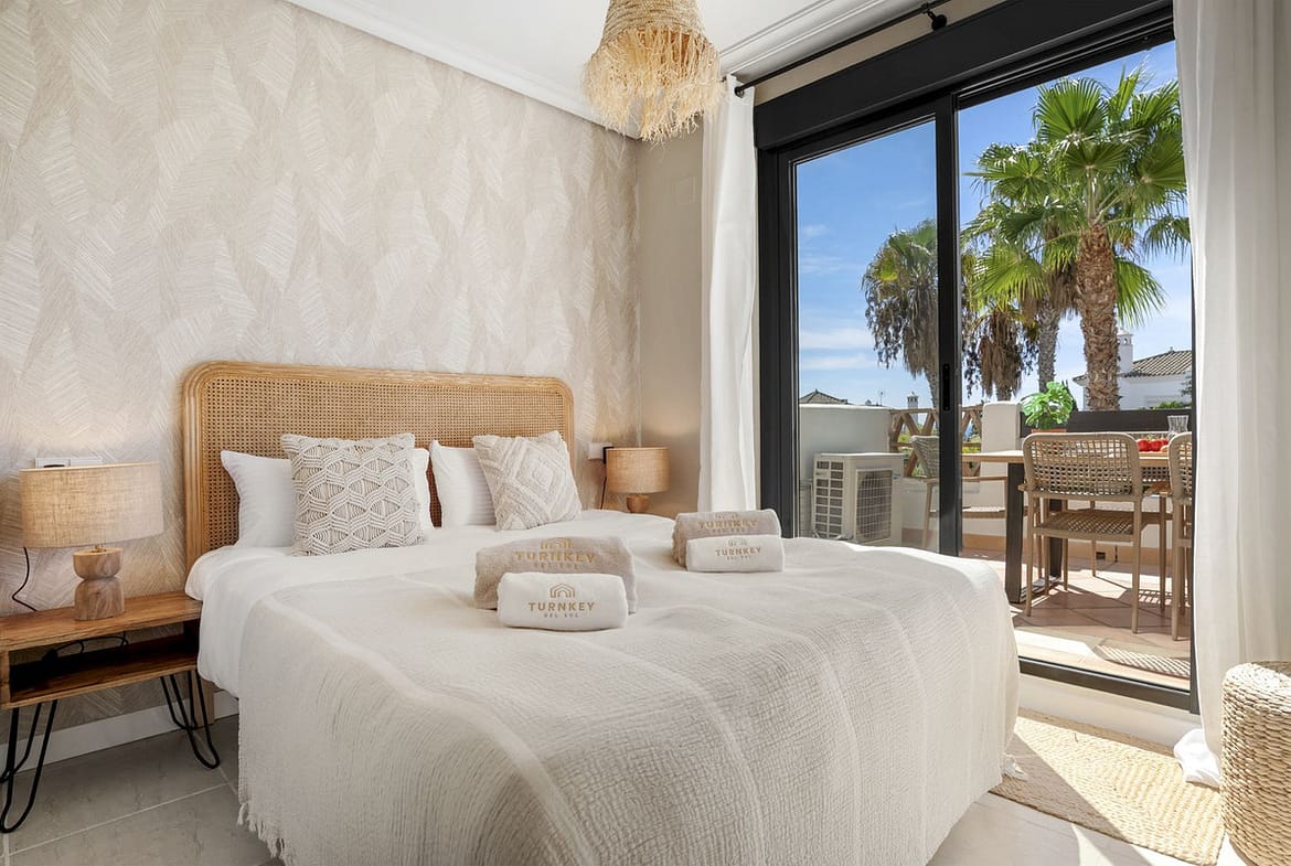 Sunset Golf is an exclusive Mediterranean residential complex, beautifully located on the La Resina Golf Course in Estepona, along the stunning Costa del Sol. This modern apartment features two bedrooms and two bathrooms. The master bedroom includes an ensuite bathroom and a comfortable double bed, while the second bedroom is furnished with two single beds – ideal for family or guests.