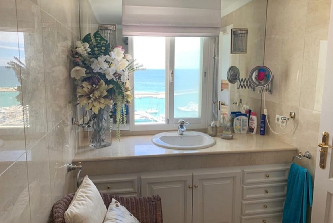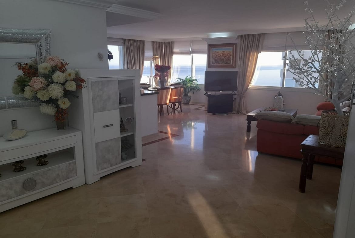 Impressive duplex penthouse of 160 m2 in front of the beach with magnificent views of the sea and the port of Estepona. It is located in a secure and well-maintained urbanization with beautiful gardens, parks, two swimming pools and parking. The urbanization has maximum security with a guard that controls who accesses it. There is air conditioning, heating and elevator. The price is worth it. You will not find an equal apartment in the whole building.