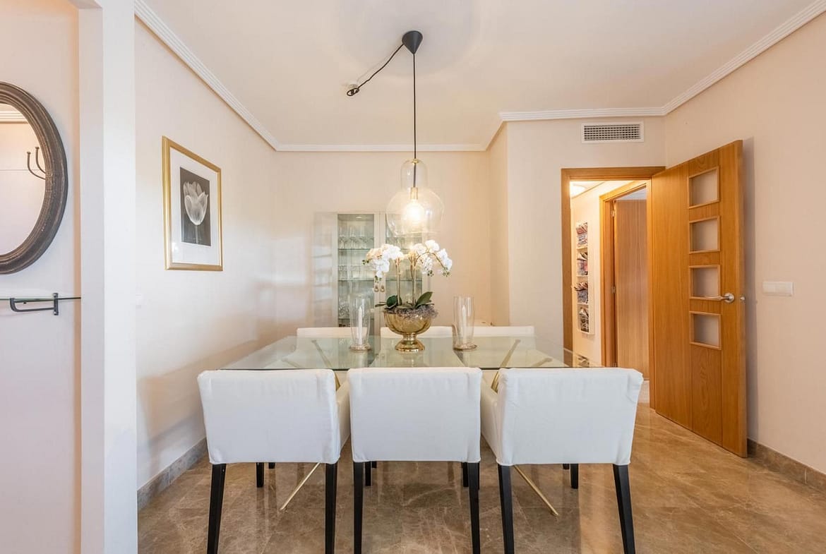 The property is fully equipped with modern furniture in excellent condition, central heating, air conditioning, and west-facing orientation. A private garage space is included, and the building offers lift access. Residents of Golf Hills enjoy excellent communal facilities, including a swimming pool open year-round with separate adult and children’s areas, a picnic zone, and an on-site paddle tennis court. The location is highly convenient, with a hospital, school, church, pilates and yoga center, and a large sports club with paddle courts, gym, and restaurant nearby, while the beach is just a 15-minute walk away. A well-balanced home offering space, amenities, and a prime setting on the Costa del Sol.
