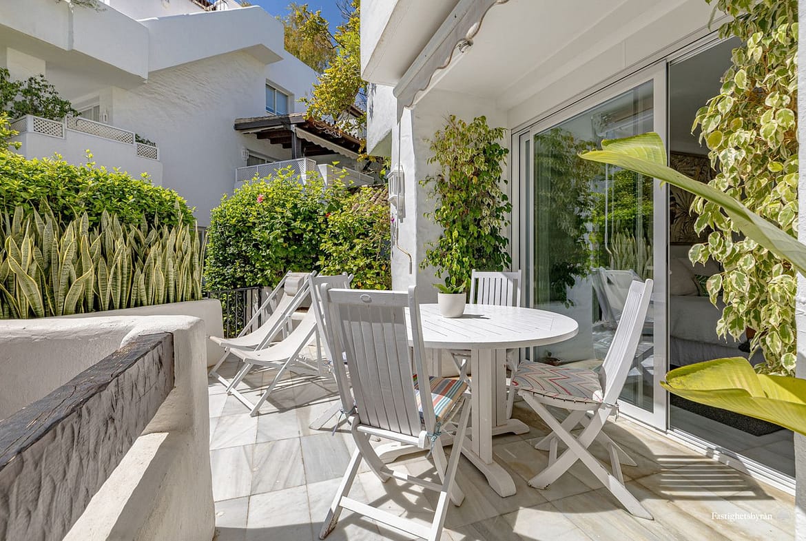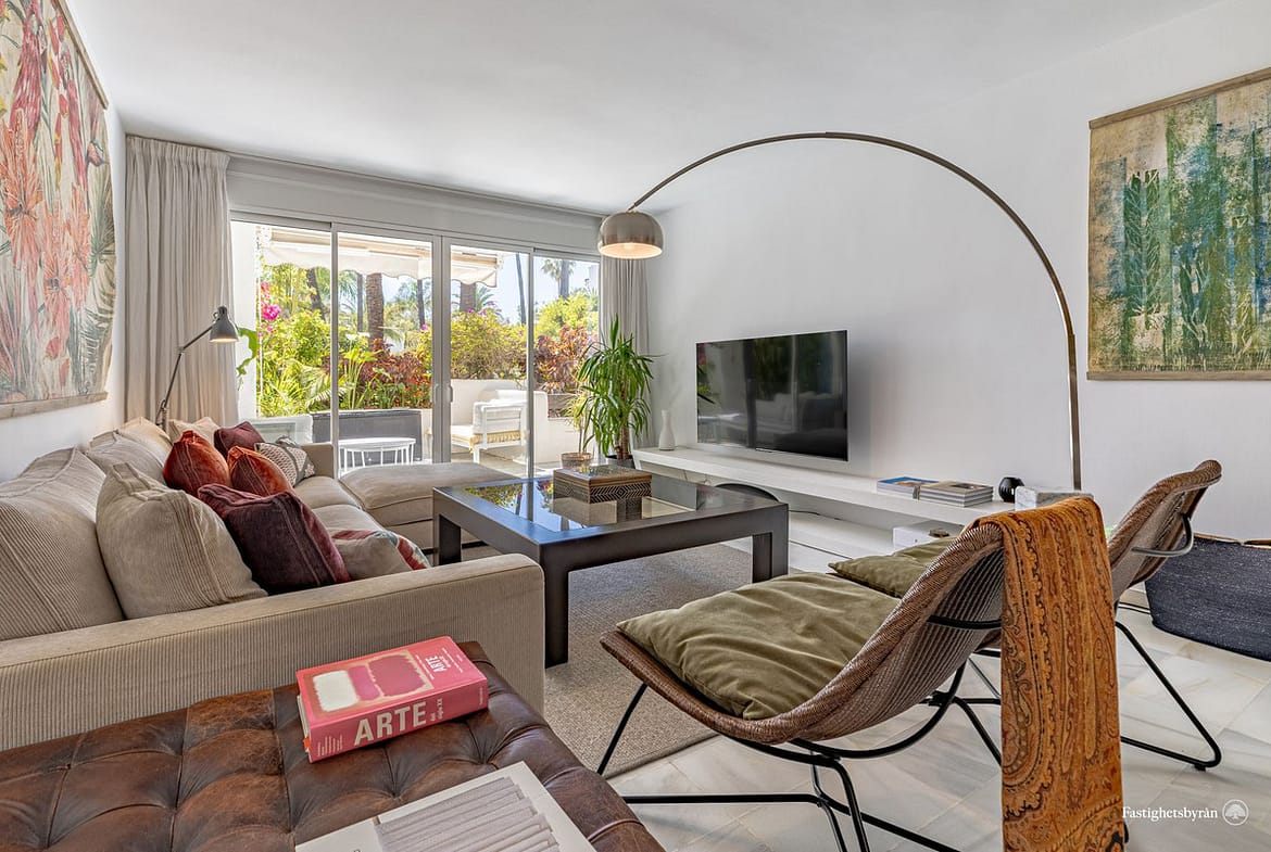 Alcazaba Beach magnificent apartment with large terrace, garden, swimming pool and partial views to the Mediterranean, in exclusive beachfront urbanization, with direct access to the beach, beach bar and restaurant on site, communal parking, 24 hour security, beautiful tropical gardens very well kept, 6 swimming pools (one heated), tennis and paddle courts. It is located on the outskirts of Estepona, with all kinds of services around and only 5 minutes drive from the marina and 10 minutes from Puerto Banus.