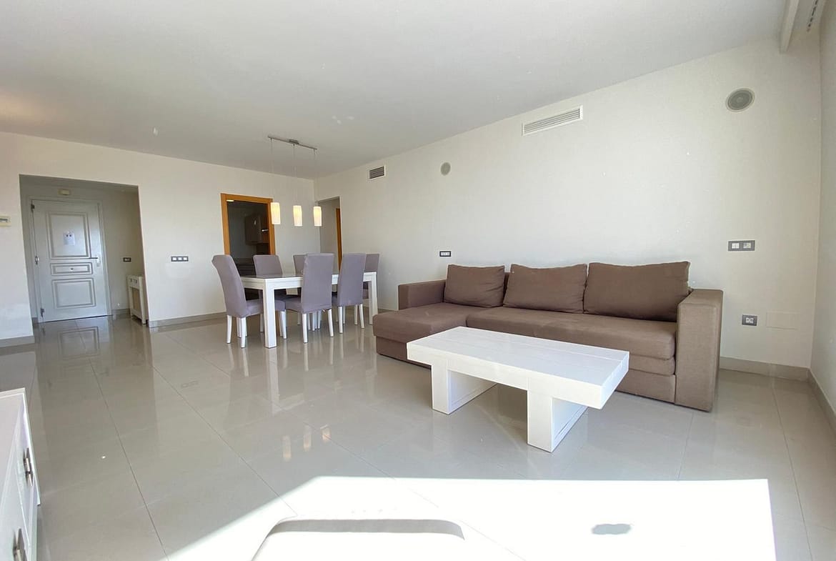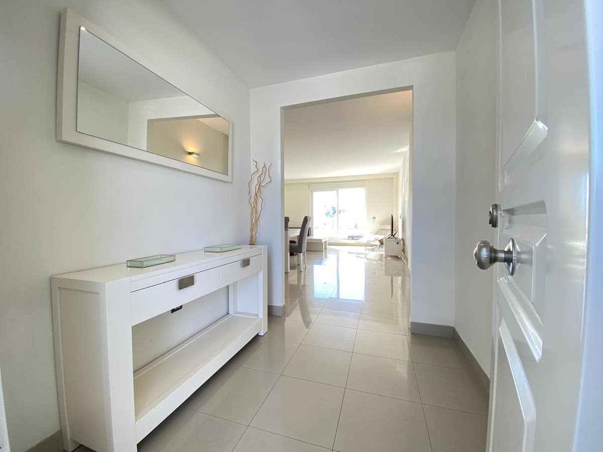 Direct access to terrace from the living room and master bedroom, open views over the communal gardens, swimming pool and sea.