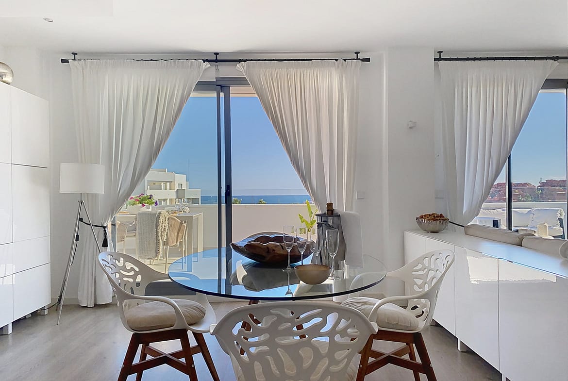 This duplex penthouse is located in the Serenity Views Urbanization, in West Estepona, and stands out for its impressive sea views and spaciousness. The property, situated in a gated community, offers the tranquility of living close to the sea and the convenience of being near golf courses, shops, restaurants, and schools.