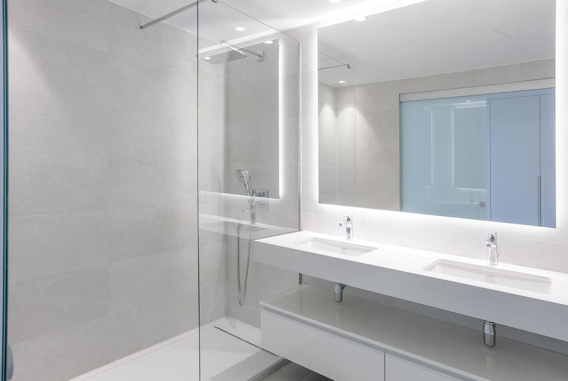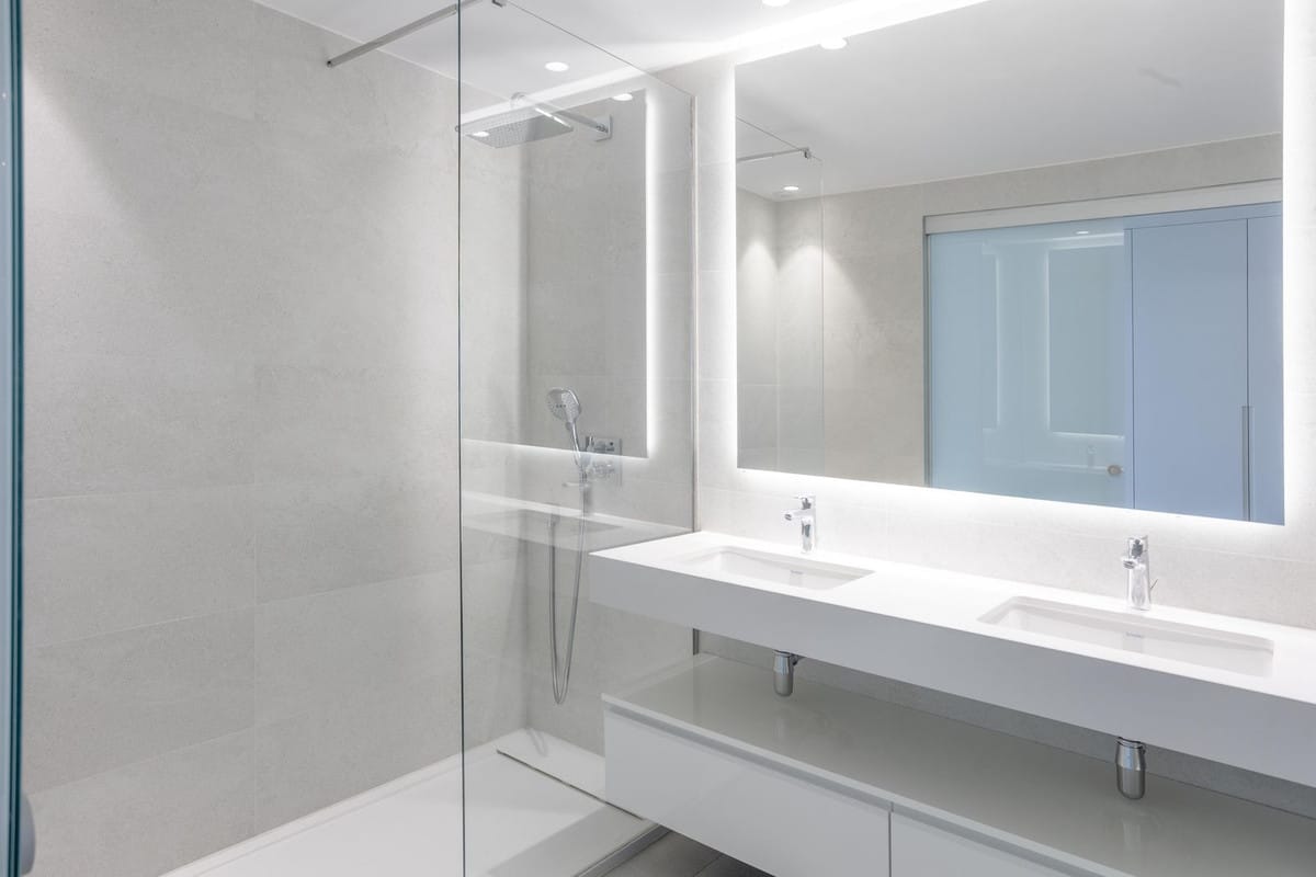 Inside, the home offers a stylish open-plan layout with floor-to-ceiling windows and high-quality materials and finishes throughout the entire apartment. Both bedrooms are generously sized, with the master suite offering an en-suite bathroom and direct access to the terrace.