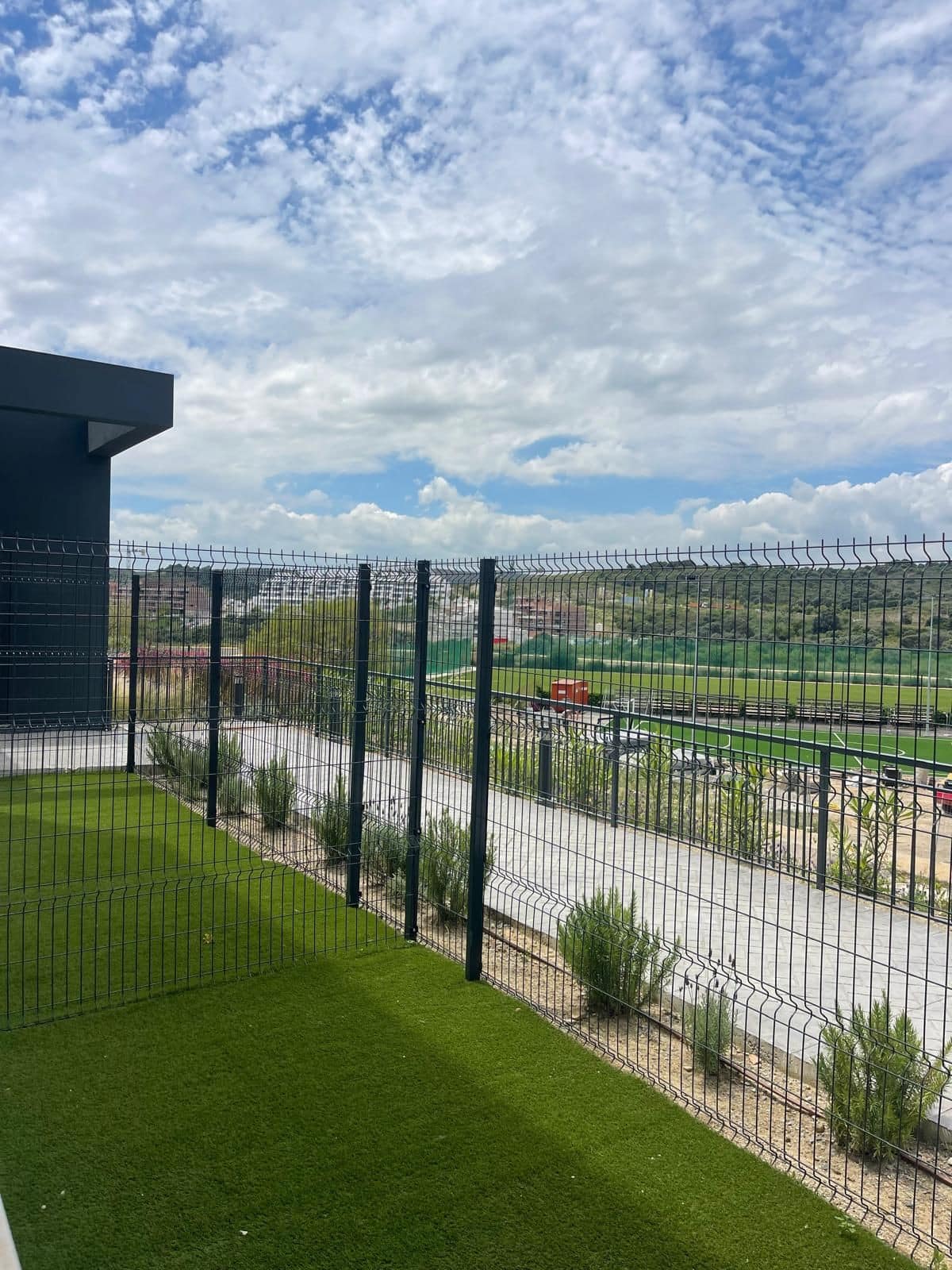 Located on the ground floor, the property offers two average sized bedrooms with fitted wardrobes, including one en-suite bathroom, plus an additional full bathroom. The open-plan kitchen flows seamlessly into the bright living area, which opens onto a private terrace and a small fenced garden with low-maintenance astro turf—ideal for relaxing or entertaining.