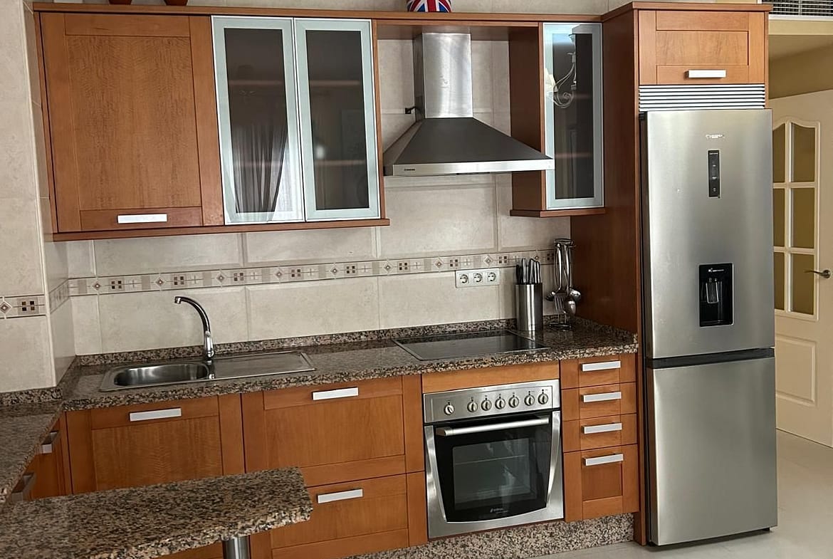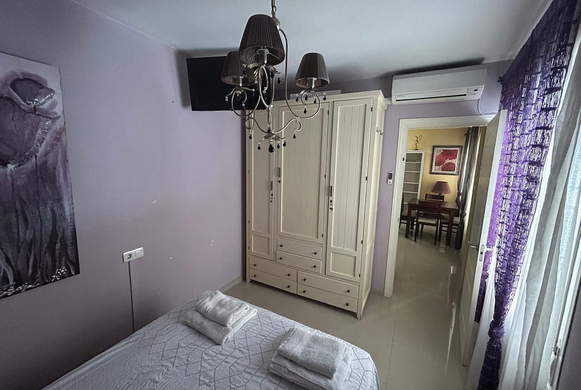 Ground floor apartment for sale, 66 m², in Fuengirola, Málaga. This apartment is just 100 meters from El Galgo beach (port area) and 100 meters from the heart of Fuengirola (Plaza La Constitución). It enjoys a prime location surrounded by shops, restaurants, and all kinds of amenities. The bus station is 150 meters away and the train station just 200 meters away. The apartment has air conditioning throughout. It features a full bathroom with shower and a window overlooking the patio, a spacious living room with two windows, an open-plan kitchen with appliances and all furnishings, a master bedroom with air conditioning and a window, and a second bedroom with two bunk beds plus a trundle bed, comfortably sleeping 5 people. It also includes wardrobes and a built-in wardrobe. There is a semi-covered patio with a laundry area. The price includes a private parking space and a storage room in the same building.