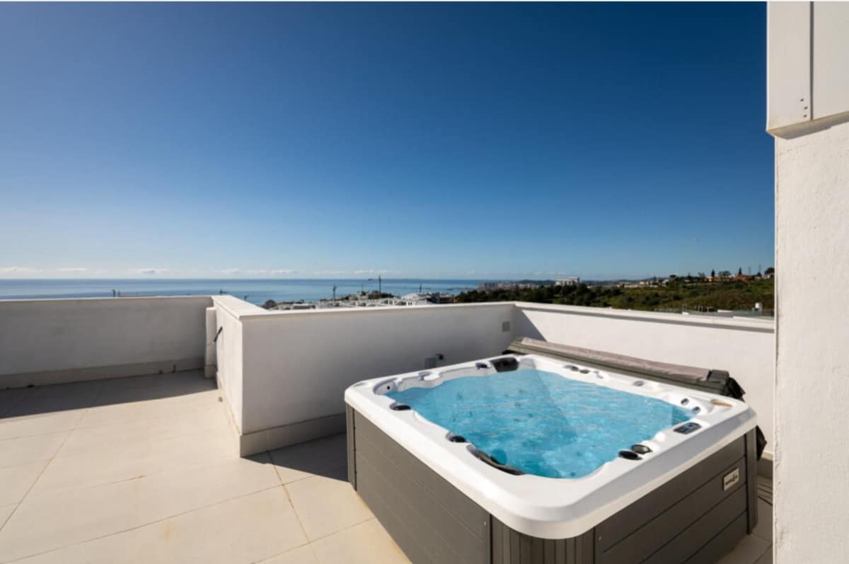 Discover elevated Mediterranean living in this striking penthouse in Reserva del Higuerón, ideally situated just a short 400-meter walk from the beaches of Fuengirola.