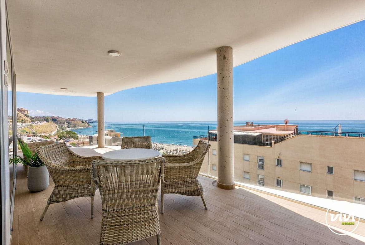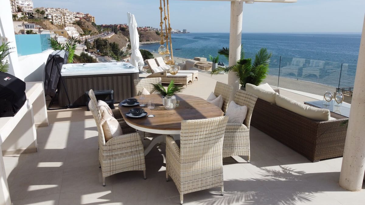 A contemporary penthouse with sweeping sea views, set just above the beach and promenade in Carvajal, Fuengirola. Designed with clean lines and generous outdoor space, it offers both modern comfort and a coastal lifestyle to enjoy all year.