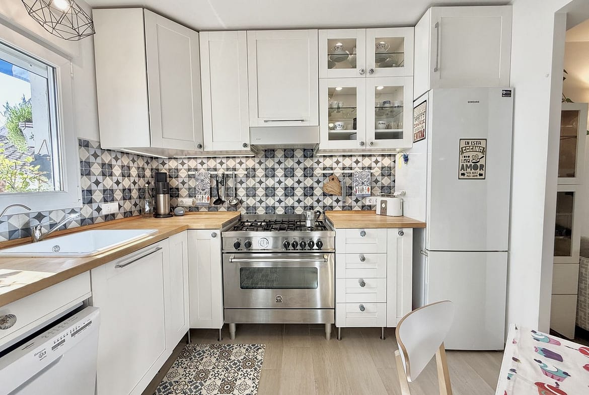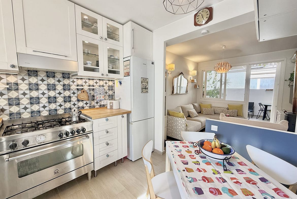 The Italian kitchen, fully renovated and open-plan to the living room, creates a bright, contemporary, and welcoming space — ideal for everyday living and for entertaining family and friends.
