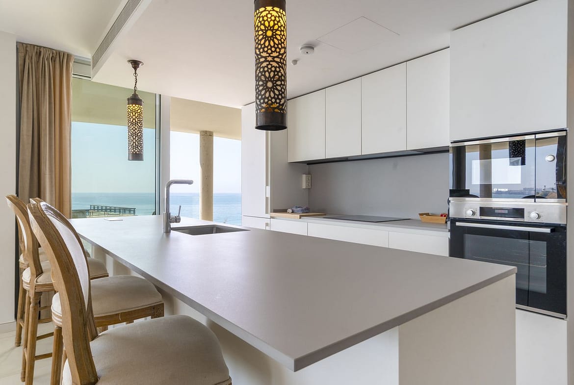 Completed in 2021, the apartment is distinguished by the largest terrace in the complex. The private rooftop solarium includes a built-in BBQ, Jacuzzi and outdoor shower, creating a serene retreat for sun-filled days and evenings with friends.