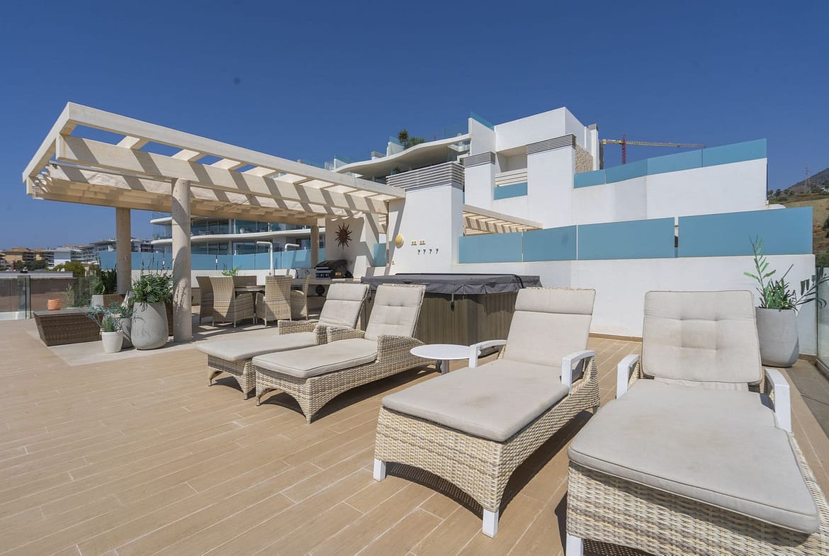 A contemporary penthouse with sweeping sea views, set just above the beach and promenade in Carvajal, Fuengirola. Designed with clean lines and generous outdoor space, it offers both modern comfort and a coastal lifestyle to enjoy all year.