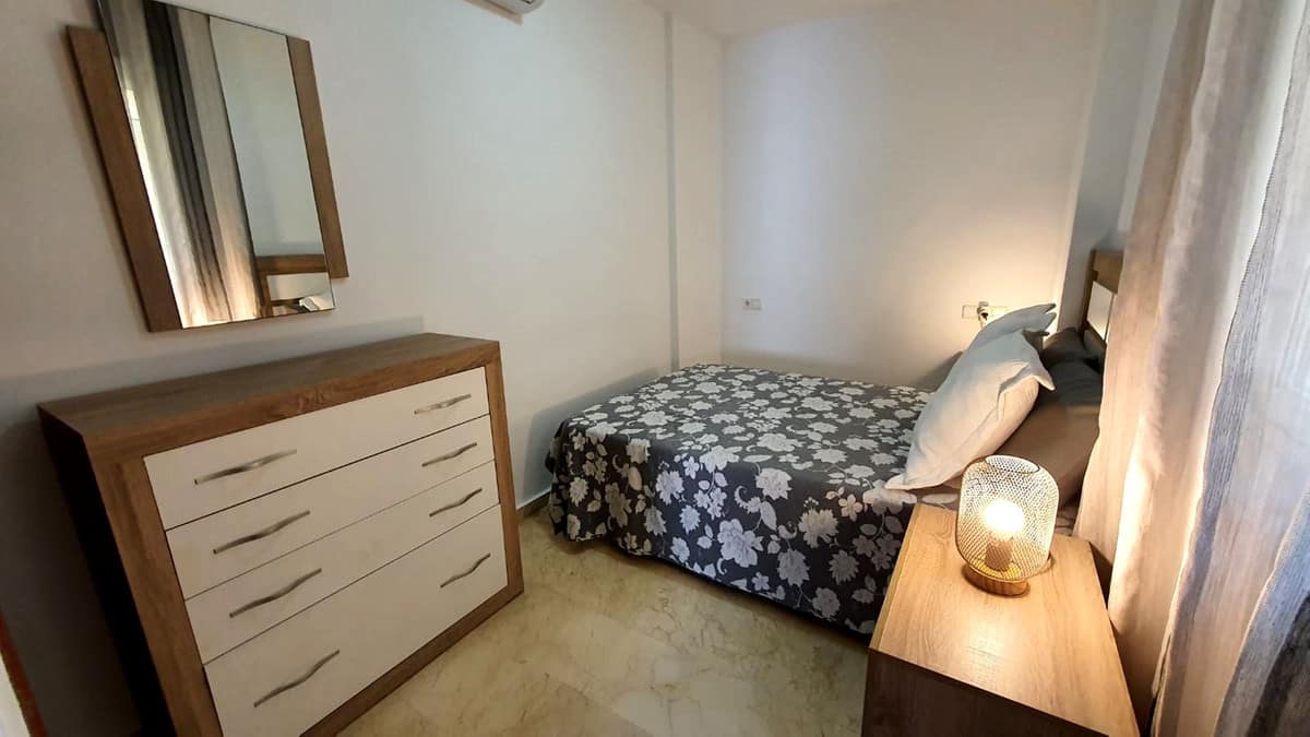 Third line beach cozy apartment in a quite and private street in the centre of Fuengirola. It is a very tranquil street as only residents can go in as you have to register your plate number in the townhall. The property has a modern open plan layout and offers good qualities like double glazed windows, marble floors and A/C. You are right in th heart of the city, 150 meters far from the beach. unbeatable location!