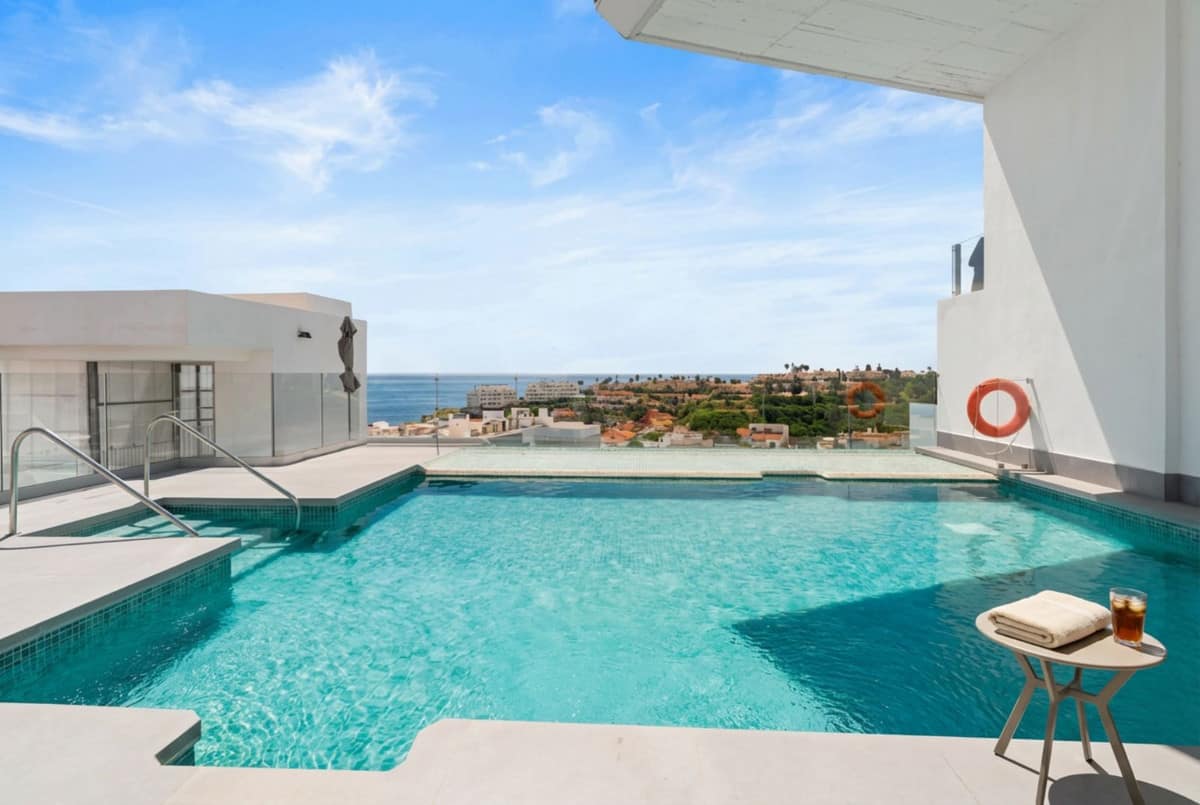 Built in 2019, the apartment offers 55 m² of interior space and a 6 m² private terrace with open views of the sea, the Mijas mountains, and the surrounding town. The property is sold fully furnished and ready for rental operation, making it an ideal investment for short-term rental income or a holiday home on the Costa del Sol.