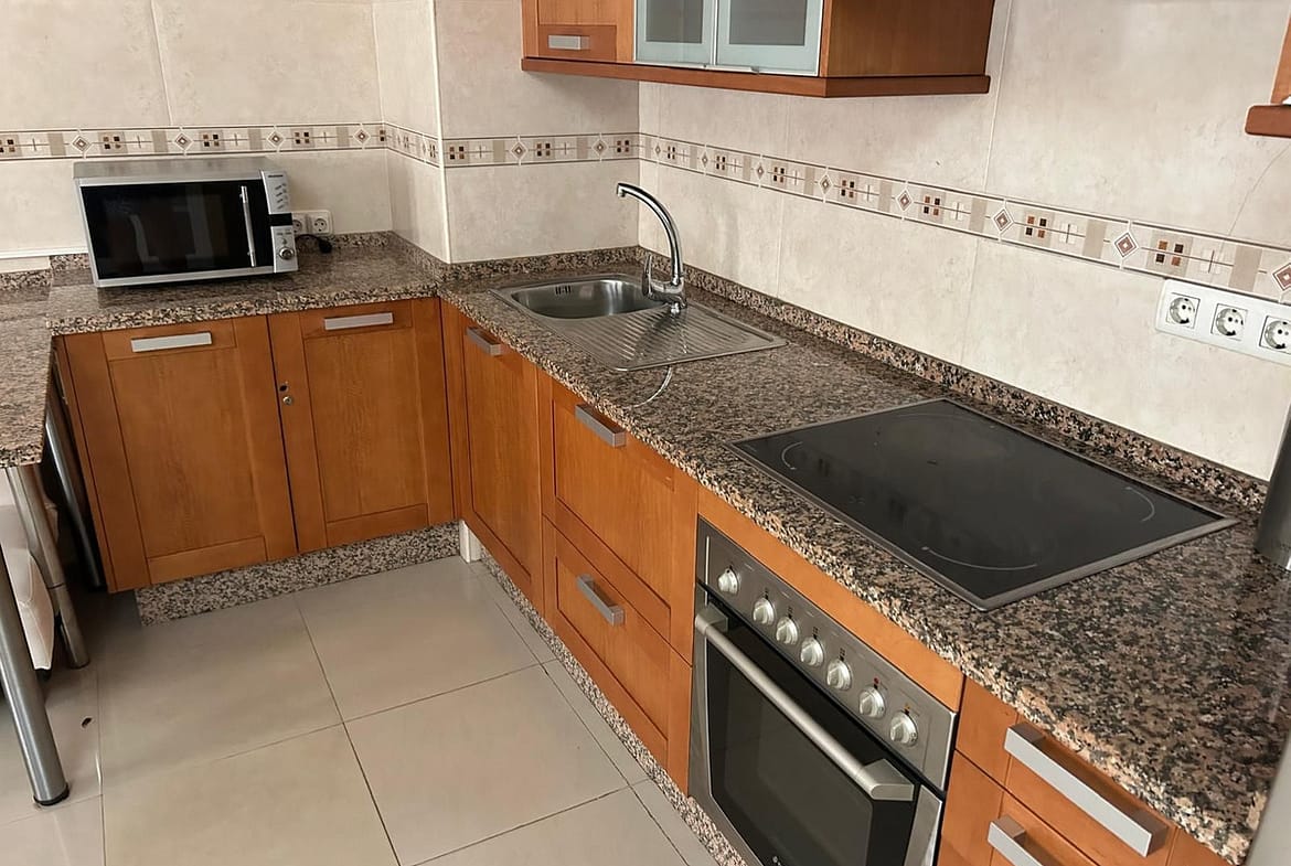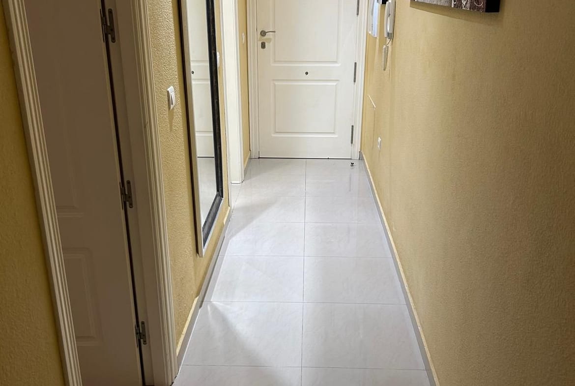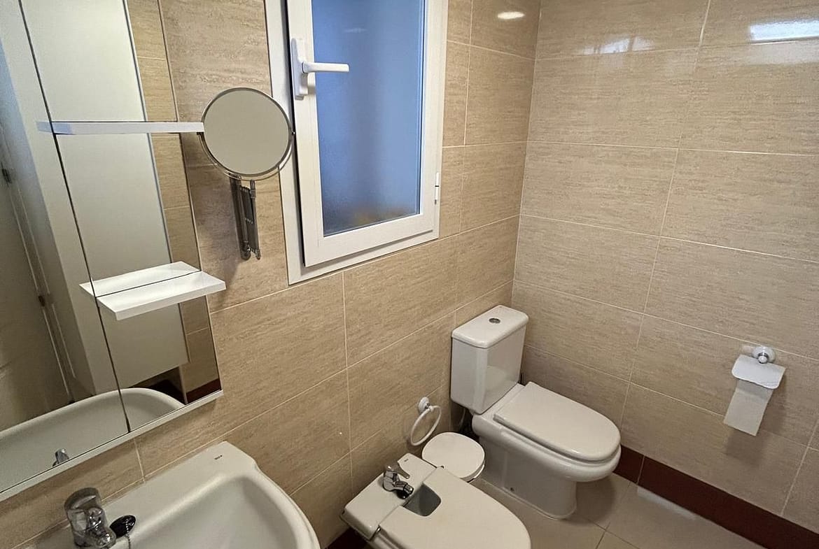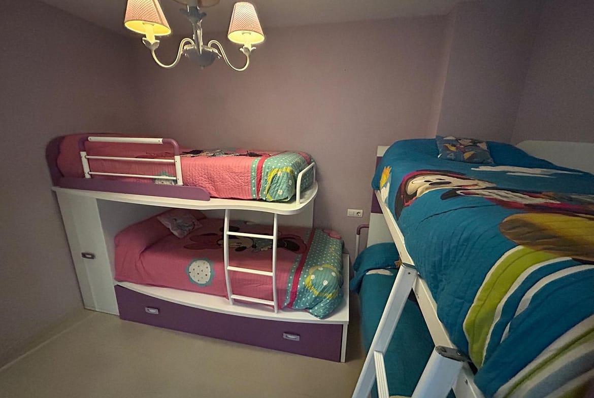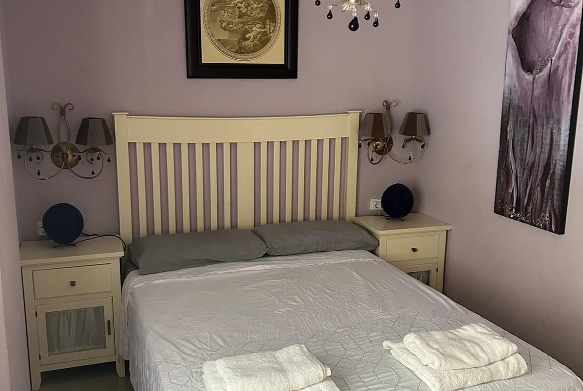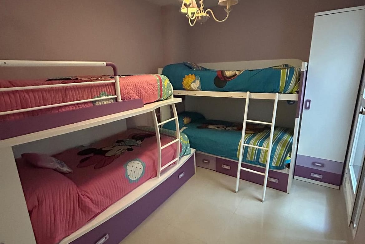 Ground floor apartment for sale, 66 m², in Fuengirola, Málaga. This apartment is just 100 meters from El Galgo beach (port area) and 100 meters from the heart of Fuengirola (Plaza La Constitución). It enjoys a prime location surrounded by shops, restaurants, and all kinds of amenities. The bus station is 150 meters away and the train station just 200 meters away. The apartment has air conditioning throughout. It features a full bathroom with shower and a window overlooking the patio, a spacious living room with two windows, an open-plan kitchen with appliances and all furnishings, a master bedroom with air conditioning and a window, and a second bedroom with two bunk beds plus a trundle bed, comfortably sleeping 5 people. It also includes wardrobes and a built-in wardrobe. There is a semi-covered patio with a laundry area. The price includes a private parking space and a storage room in the same building.