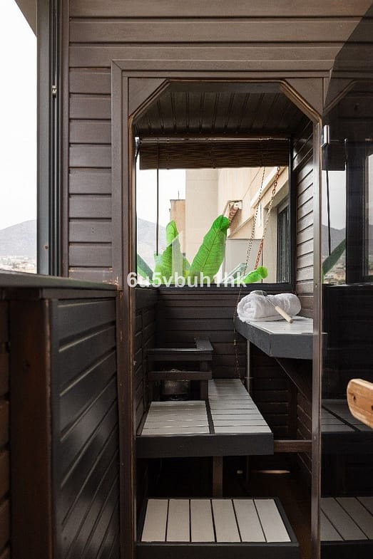 The penthouse has two bedrooms, a large bathroom with shower and a private sauna with its own shower room, located at the rear. The sauna offers impressive views of the mountain and the emblematic figure of “El Toro”. Additionally, there is another terrace at the rear, facing west, perfect for watching the beautiful sunsets over the mountains.