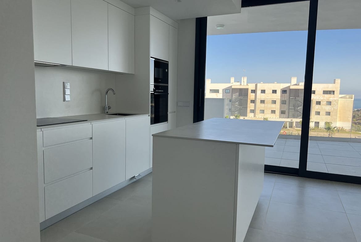 Spacious two-bedroom apartment located in the prestigious Higuerón West urbanisation. South facing this unfurnished unit features a fully equipped kitchen, a generous terrace with open views, two private parking spaces, and a storage room.