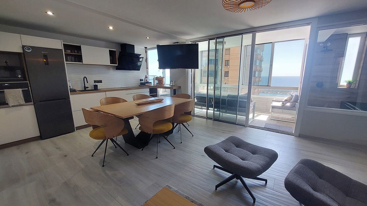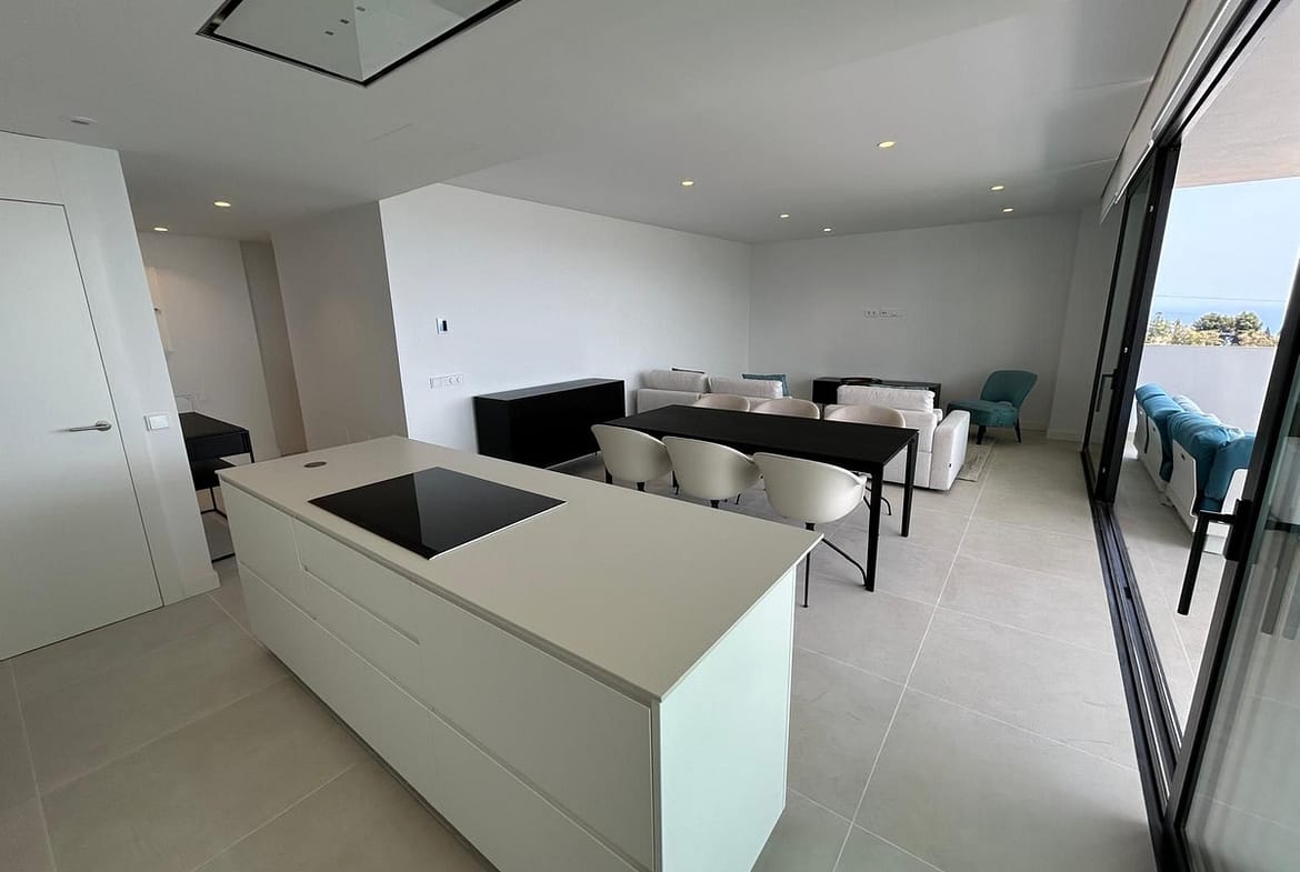 The apartment has been completely renovated to a high standard, featuring a stylish new kitchen, two new bathrooms (one en-suite), and high-quality finishes throughout. It offers two spacious bedrooms, a bright living room, and a private terrace with a hydro-massage bath, where you can relax while enjoying panoramic views of the beach and marina.