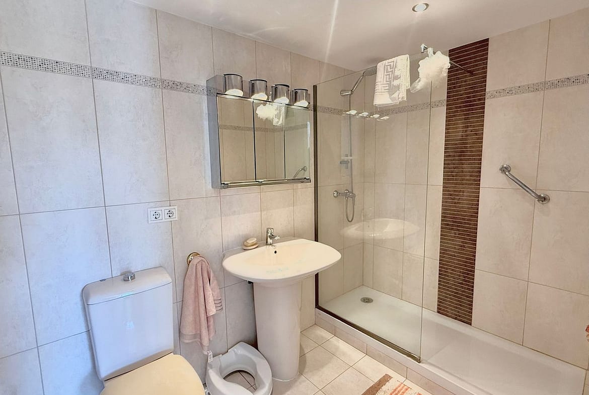 Situated on the top floor, this exceptional property enjoys spectacular panoramic views of the sea and beach, offering privacy, natural light, and an unbeatable Mediterranean setting.