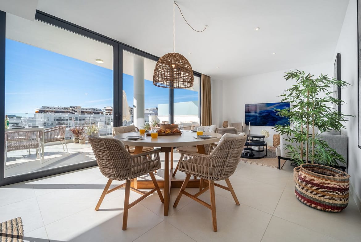 The floor to ceiling sliding windows creating a seamless transition where the interior living space and the expansive terrace blend perfectly into one.