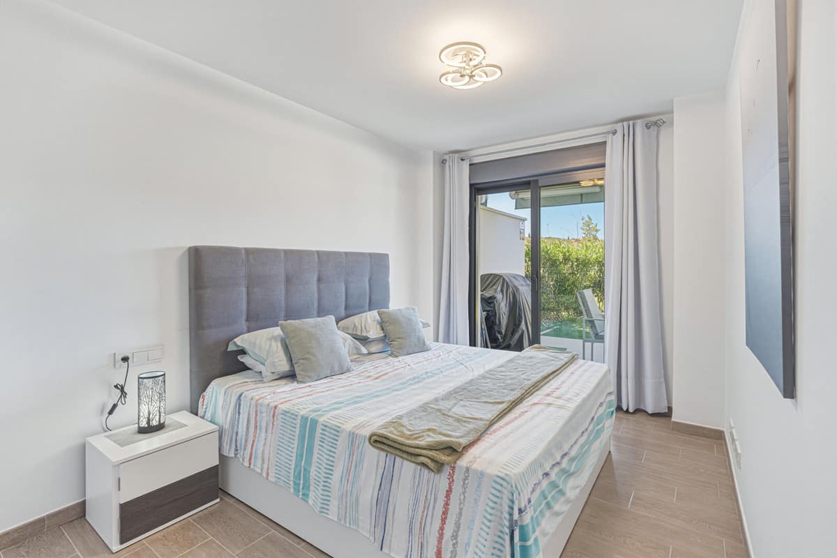 This bright and spacious two-bedroom ground floor apartment is ideally located within the sought-after gated community of El Lagar in La Cala de Mijas. Both bedrooms enjoy direct access to a generous terrace and private garden, offering plenty of natural light and a pleasant sense of space throughout. The master bedroom features its own private ensuite, and there is also a separate family bathroom for guests or the second bedroom. Inside, the property features a fully fitted kitchen with a breakfast bar overlooking the open-plan living and dining area, along with a convenient utility room located just off the kitchen. The private garden provides direct access to the beautifully maintained communal areas, which include a large swimming pool and a dedicated children’s play area. Additional features include air conditioning, fitted wardrobes, and a private parking space, all while being just a short drive to the beach and the centre of La Cala, where you’ll find a wide range of shops, restaurants, bars, schools, and nearby golf courses.