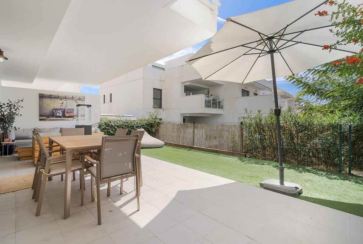 The master bedroom has built-in wardrobes and also provides access to the garden. In addition, this bedroom features a beautiful en suite bathroom. The second bedroom also has direct access to the garden. A pleasant bedroom, also with built-in wardrobes.