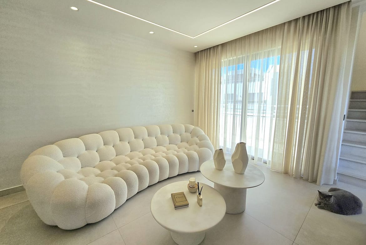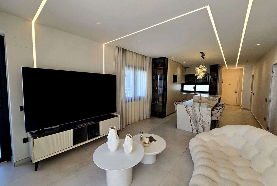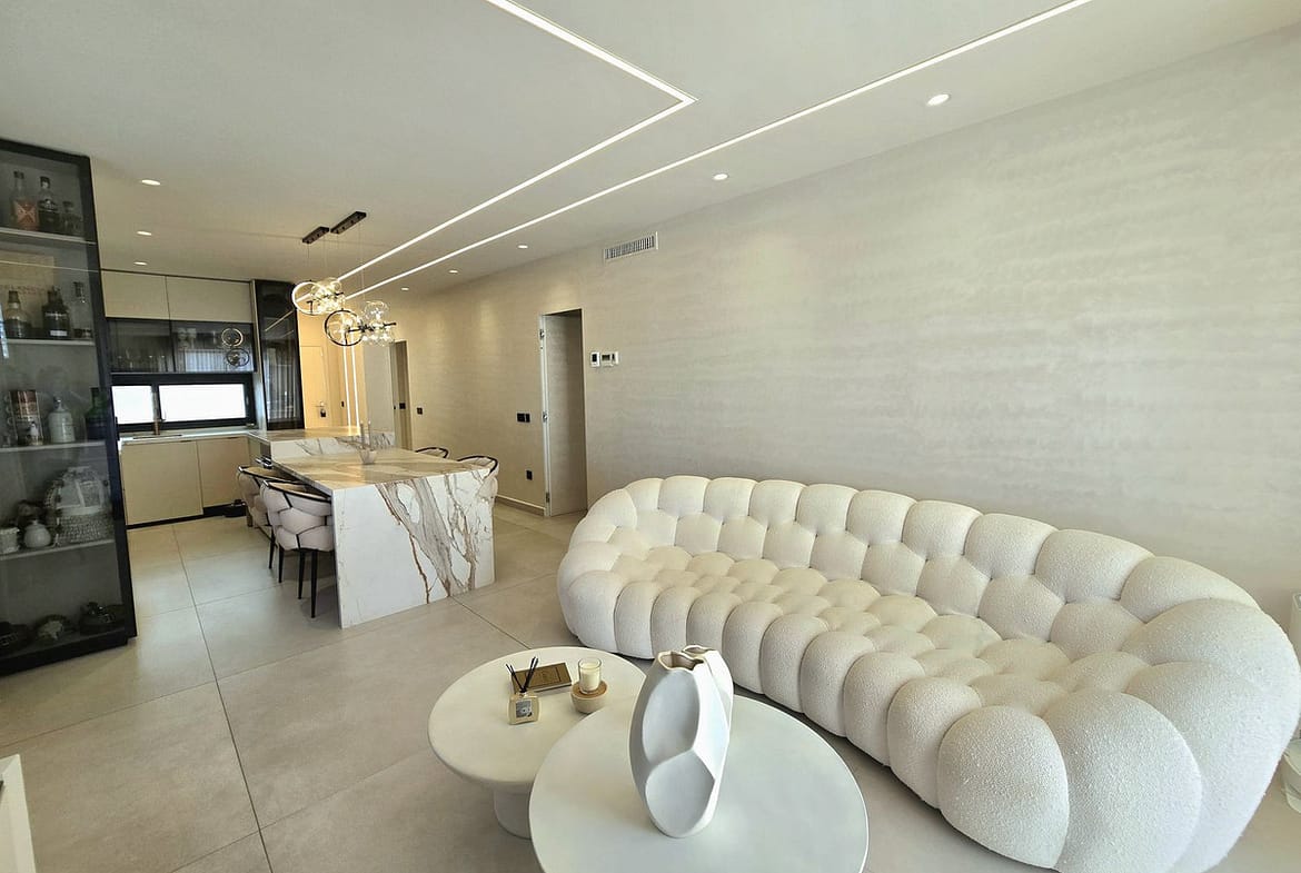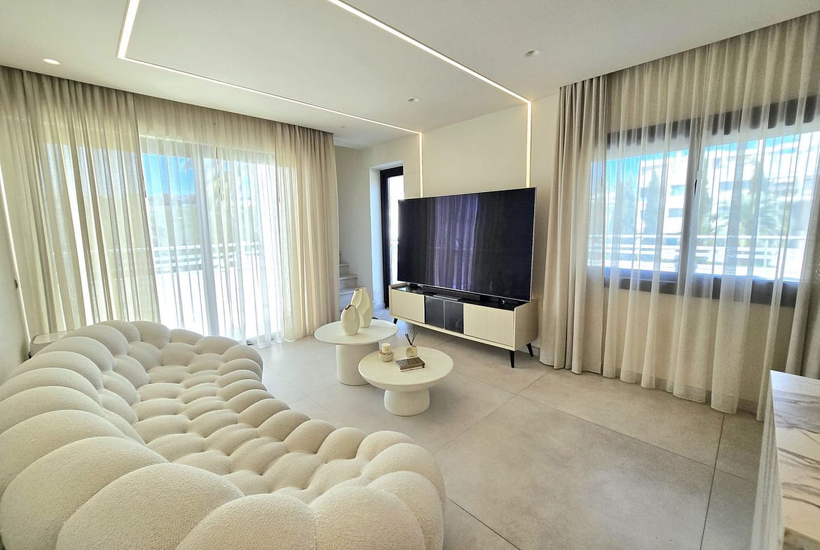 It offers 155 m² built area, distributed into 2 spacious bedrooms and 3 modern bathrooms, all finished to high-quality standards. Bright living room with direct access to a terrace, providing an excellent indoor-outdoor connection.