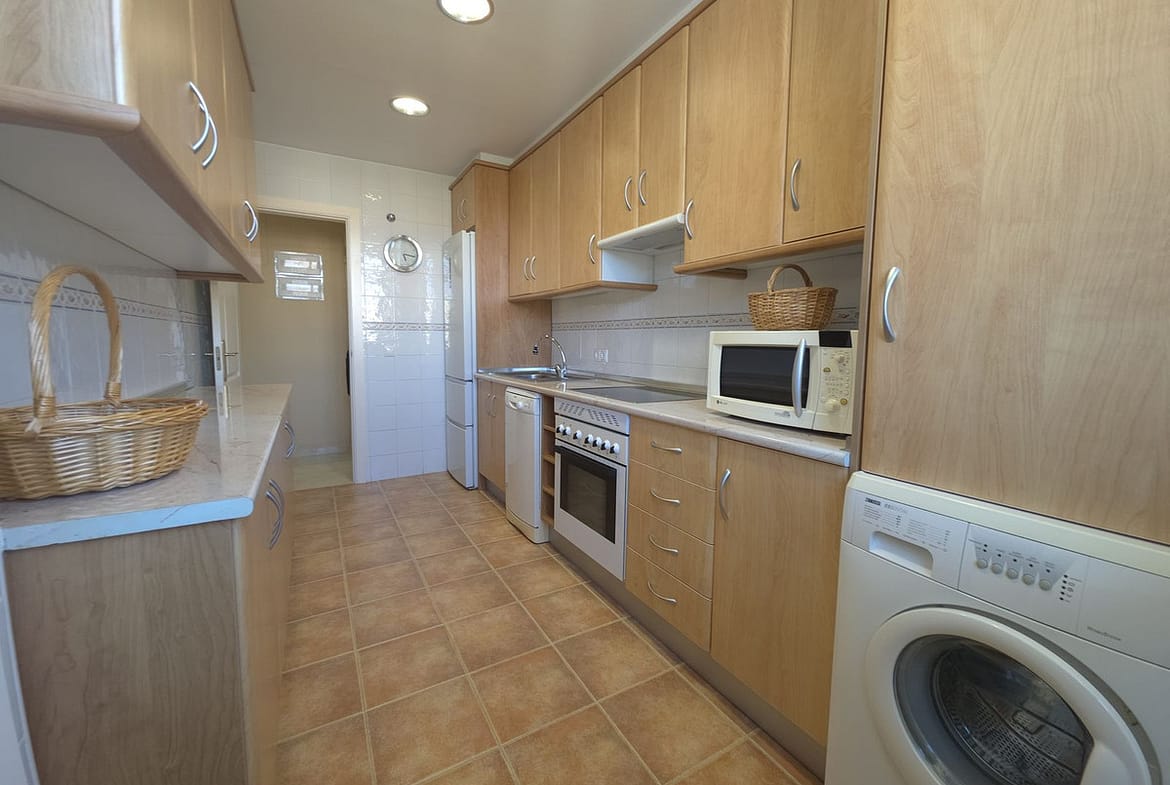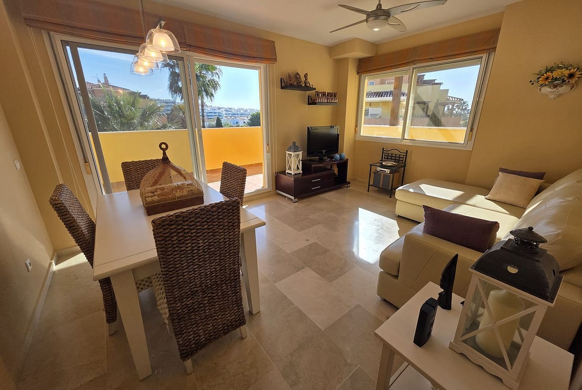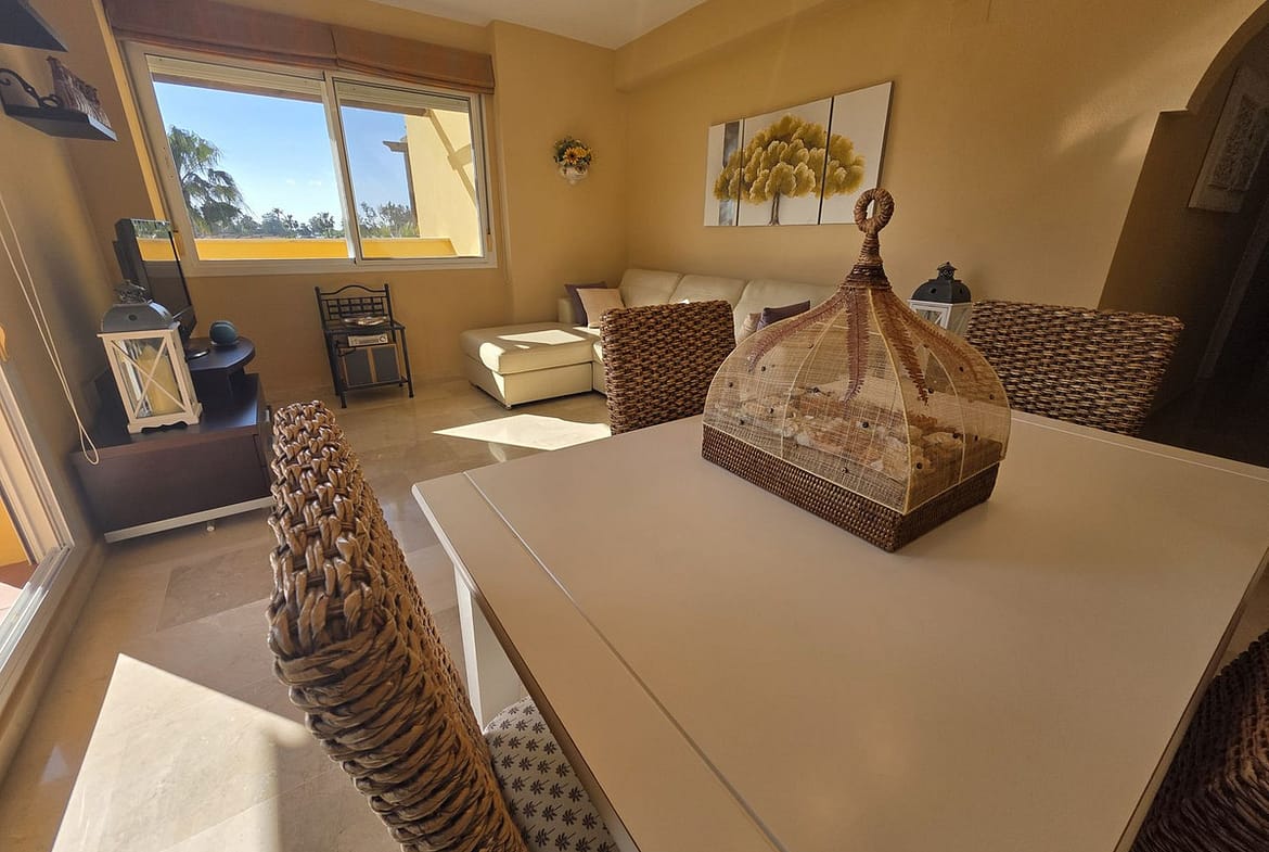 Step inside to find a bright and elegant living space finished with marble flooring, double glazing, and hot & cold air conditioning for year-round comfort. The apartment is sold fully furnished and features a fully fitted kitchen, fitted wardrobes, and a practical utility and storage room, making it ready to move into or ideal as a holiday rental investment.