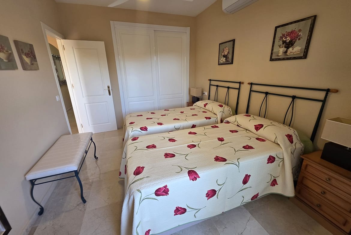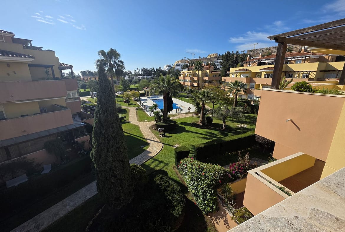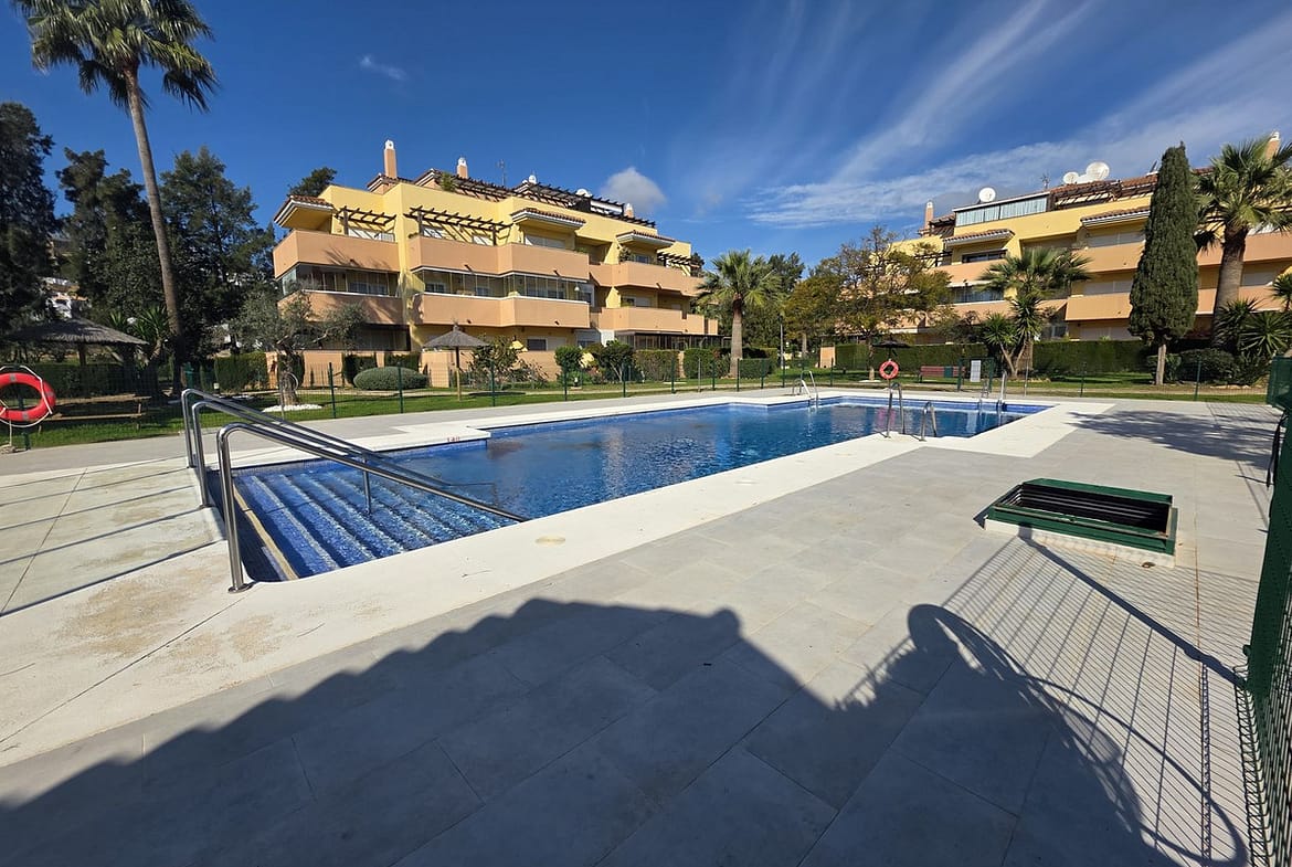 The apartment sits within a secure gated urbanisation offering beautifully maintained communal gardens, a large swimming pool plus children’s pool, lift access, and underground private parking. An entry phone and alarm system provide additional peace of mind.