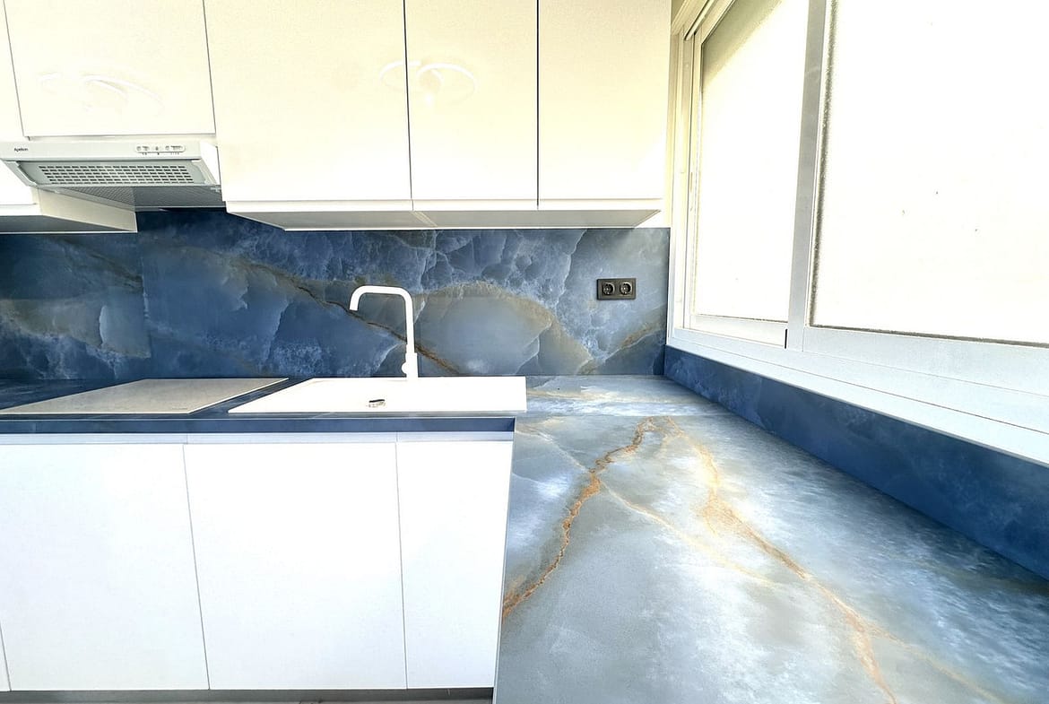 Recently renovated to a high standard and never lived in, the apartment offers a fresh, modern interior with a bright and well-planned living space. Large windows and patio doors open onto a private terrace with beautiful sea views, filling the home with natural light.
