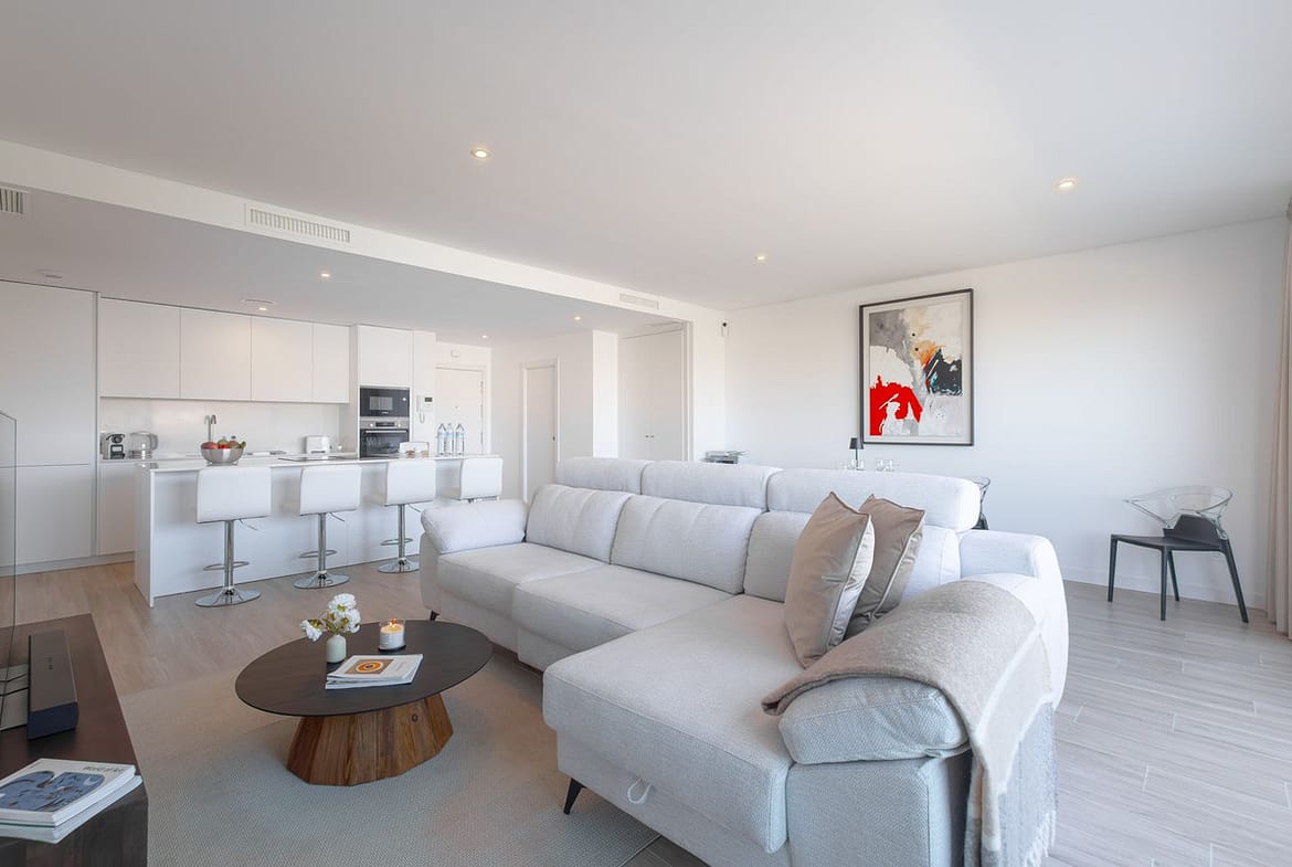 Step into this spacious 100 m² apartment featuring bright, open-plan living, contemporary décor, and high-quality finishes. The highlight is a stunning 62 m² private terrace, beautifully furnished with a dining table, outdoor sofa, and sunbeds — ideal for relaxing mornings or sunsets.