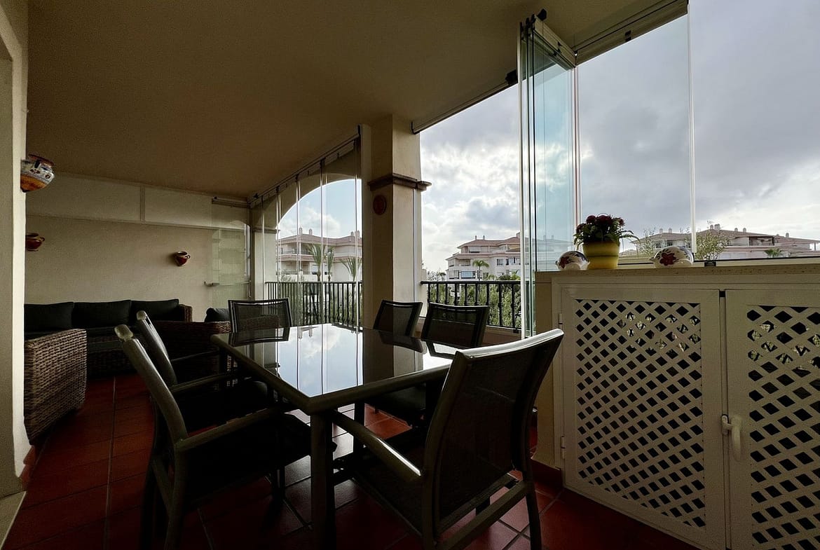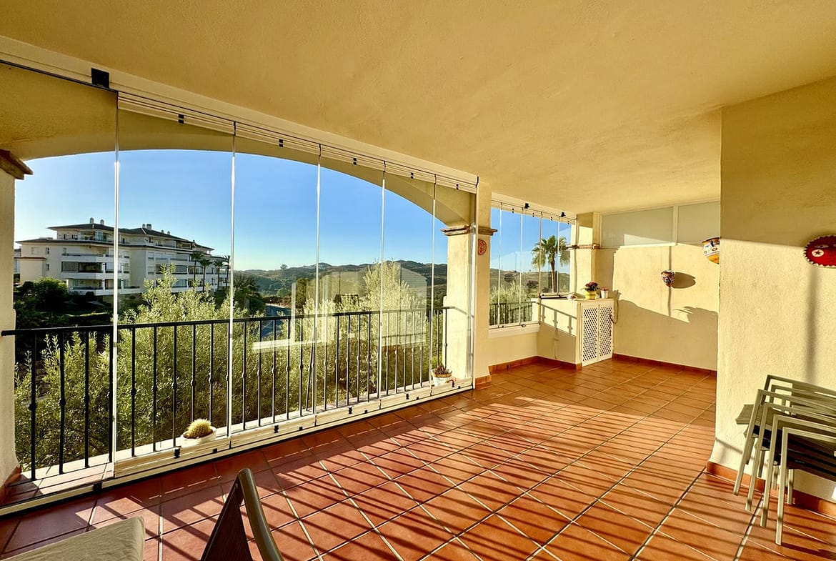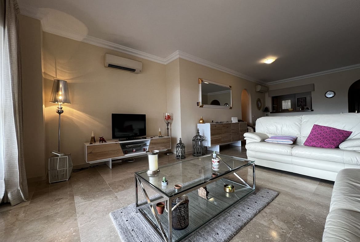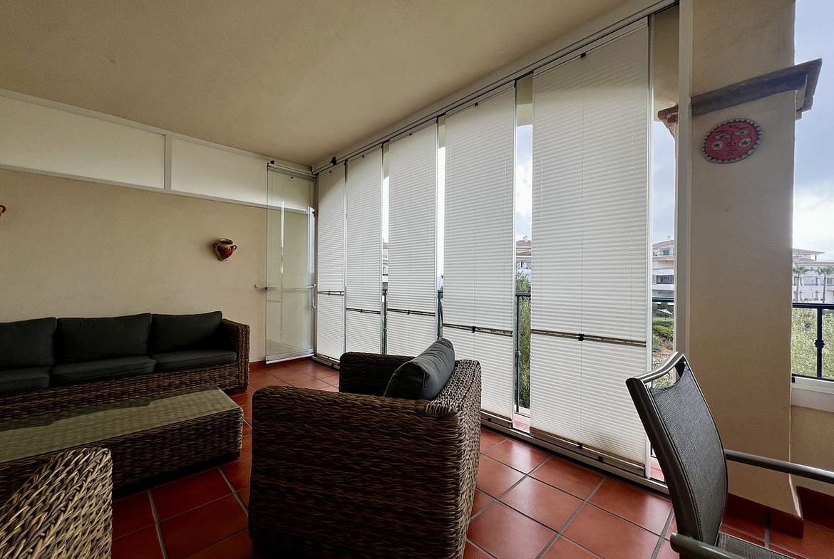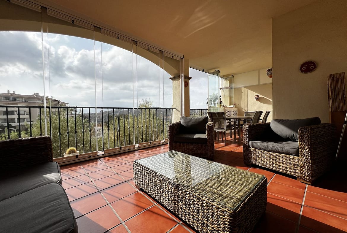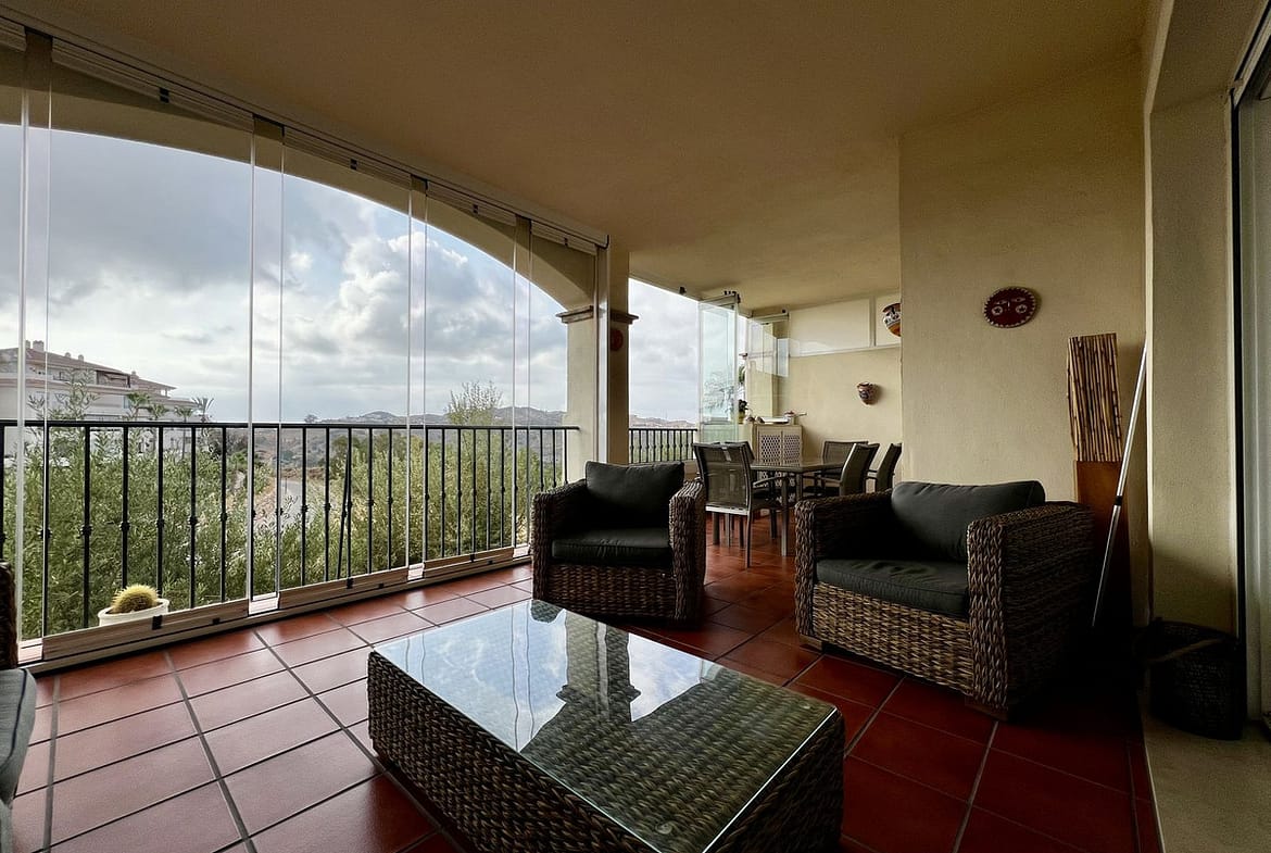 This stunning two-bedroom apartment, located in La Cala Hills, offers a perfect blend of comfort and breathtaking views. With a living area of approximately 94 m², the apartment features two spacious bedrooms and two bathrooms, one of which is en suite. The 24 m² terrace, recently upgraded with new tiles and glass curtains, enjoys the morning sun and provides a beautiful view of the surrounding mountains.