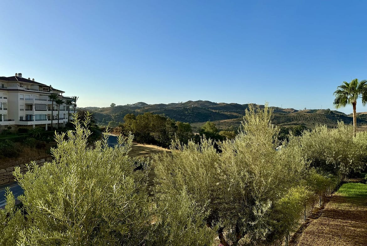 The complex is perched on top of a hill, offering some of the best views in the area, and boasts two communal swimming pools and beautifully landscaped gardens.