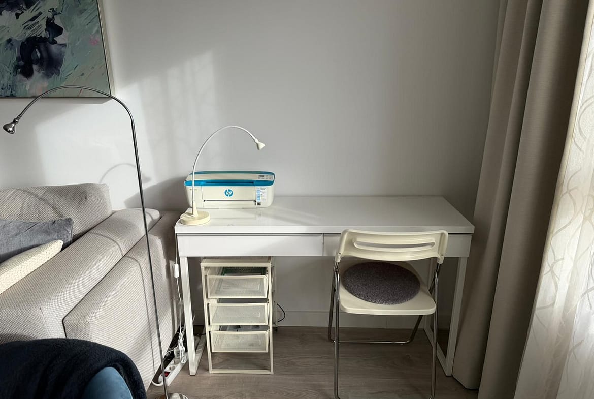 The apartment is in excellent condition, practically like new, having been barely used. It is rented fully furnished and ready to move into. A private parking space and a storage room are included in the price.