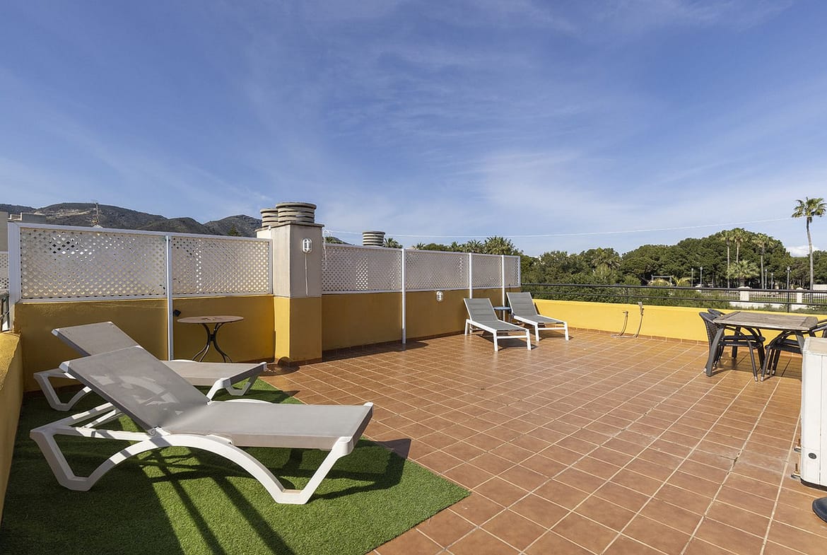 A beautiful South West facing penthouse with a roof terrace, amazing views, walking distance to public transport and local amenities, underground parking, a storage room and on a community which allows short term rentals.
