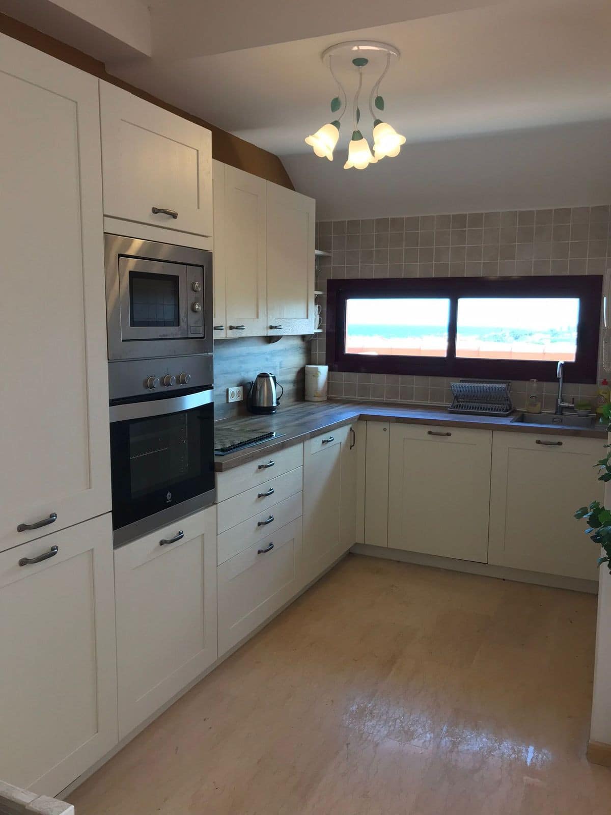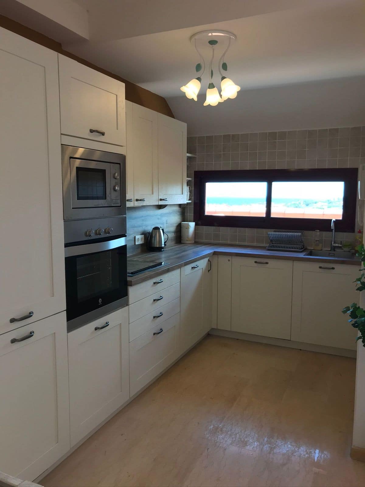 The apartment features two comfortable bedrooms, each with its own en-suite bathroom, along with a separate guest toilet. Floor-to-ceiling windows connect the interior with the expansive terrace, filling the space with natural light and allowing you to enjoy the surrounding beauty from sunrise to sunset. The terrace itself is ideal for outdoor dining, sunbathing, or simply relaxing while taking in the peaceful views of sea and nature.