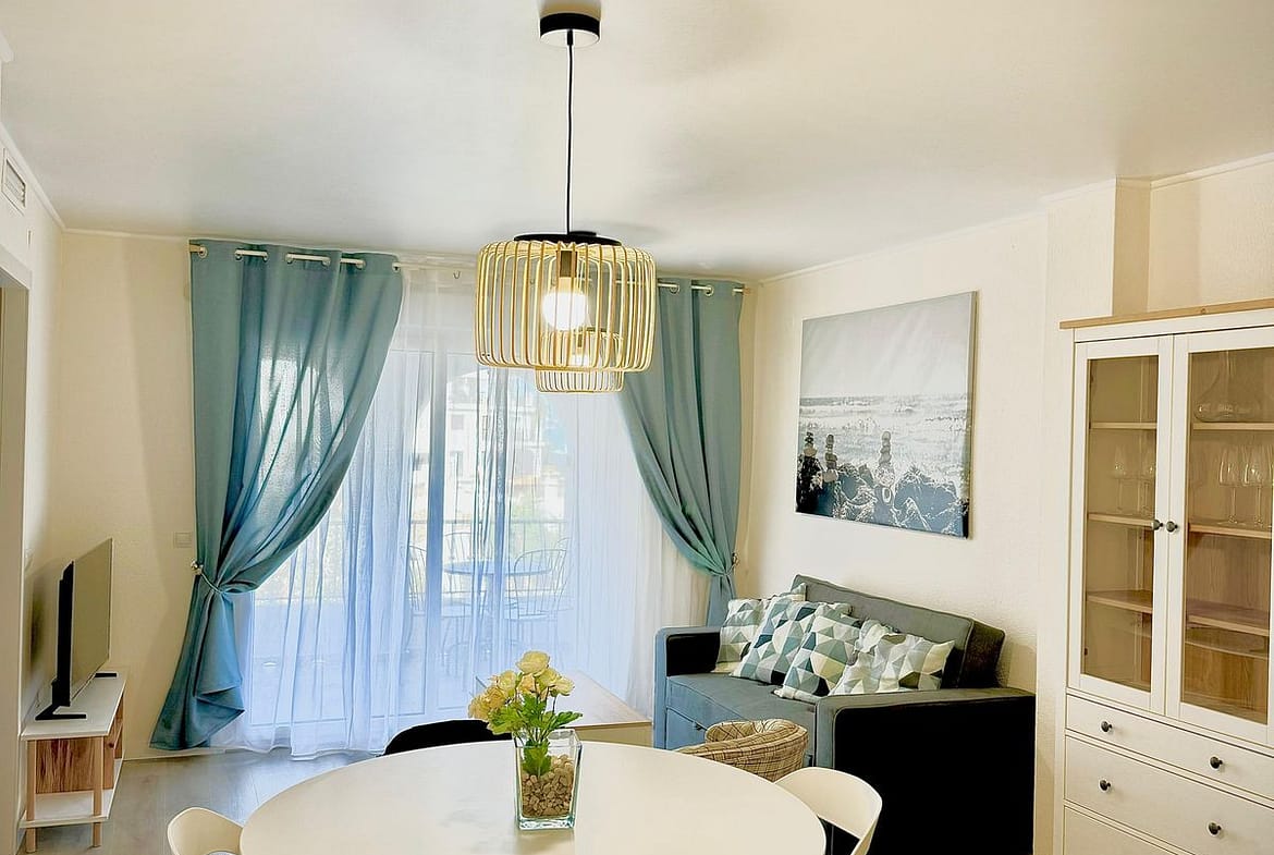 Fully renovated 2-bed / 1-bath beachfront apartment (75 m²) with sea views, located right in Puerto de Manilva / Puerto de la Duquesa.