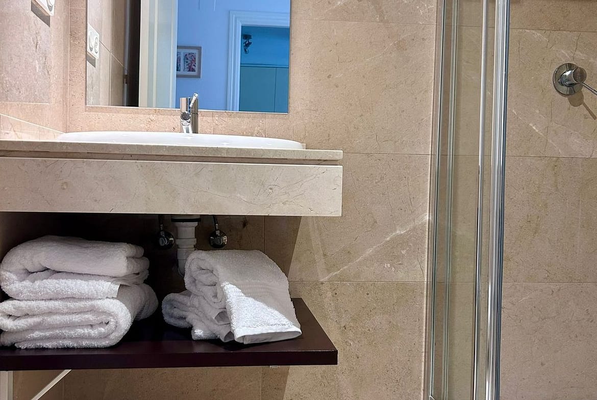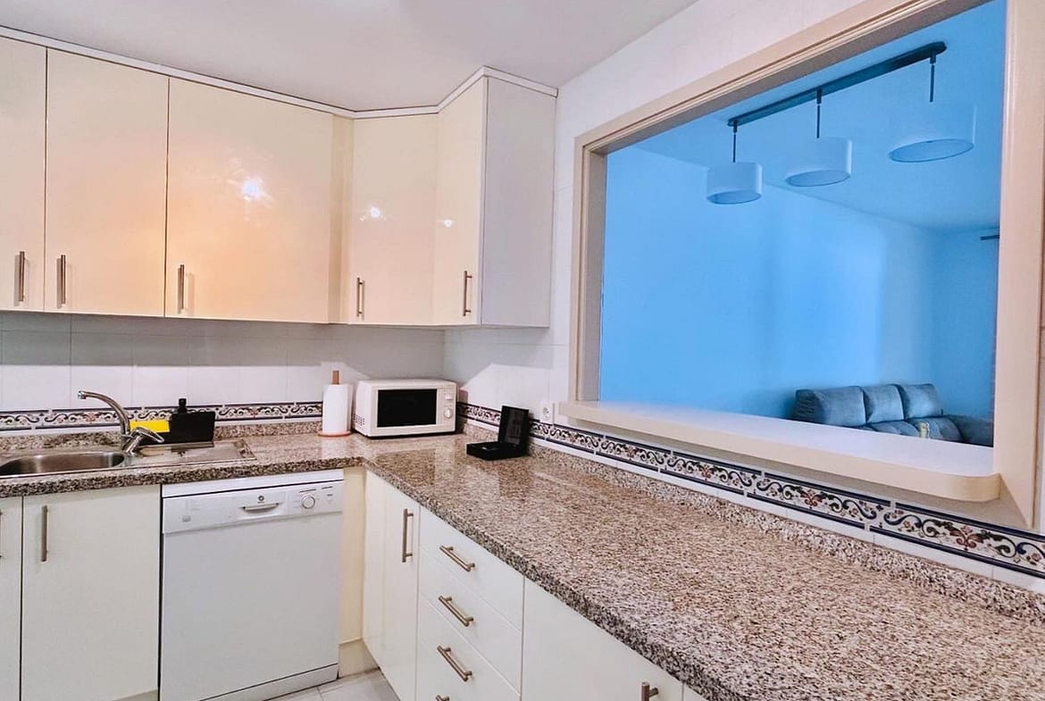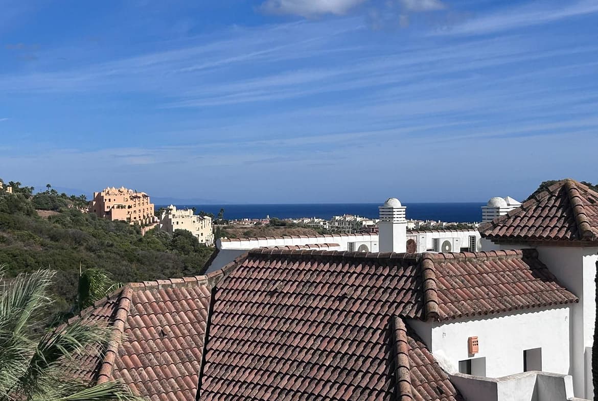 Located in the exclusive Duquesa Village development, this beautiful apartment offers a perfect combination of comfort, tranquility, and spectacular sea views. Located just minutes from the beach, golf courses, and all amenities, it boasts excellent connections to the highway, making it an ideal location for both living and investing. The 115 m² home, in perfect condition, stands out for its brightness and south-facing orientation, providing morning sun and a feeling of spaciousness. Although listed as a first floor, its actual height is equivalent to a third floor, ensuring privacy and unobstructed views. It features two double bedrooms, two full bathrooms, a spacious living-dining room with direct access to a covered terrace with open views, a fully equipped kitchen, and a separate laundry room. It includes an underground parking space, a storage room, and a valid tourist license, perfect for vacation rentals. The development offers 24-hour security, five communal pools surrounded by gardens, a paddle tennis court, and is pet-friendly, all in a well-maintained and privileged setting.