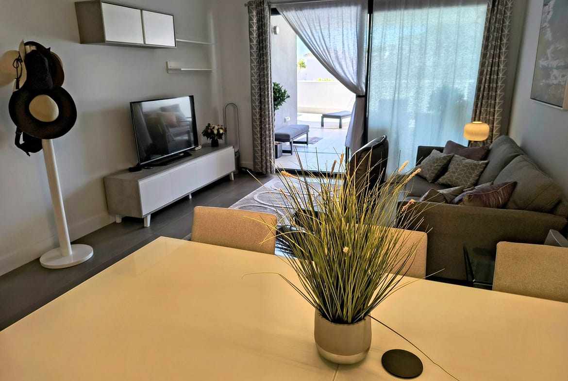 Situated in Pure South, the best new development in La Duquesa, this stunning elevated ground floor apartment offers everything you would ant from a holiday home or permanent residence. The property is only 2 years old and is sold fully furnished so completely key ready.