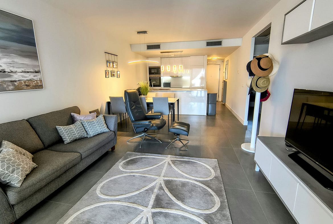The property itself is fully equipped with an open plan kitchen/dining area which offers plenty of natural light. You also have a seperate laundry room. 2 bedrooms and 2 bathrooms with your master bedroom having it's own en suite bathroom. From your huge south facing 43m2 terrace you have stunning sea views.