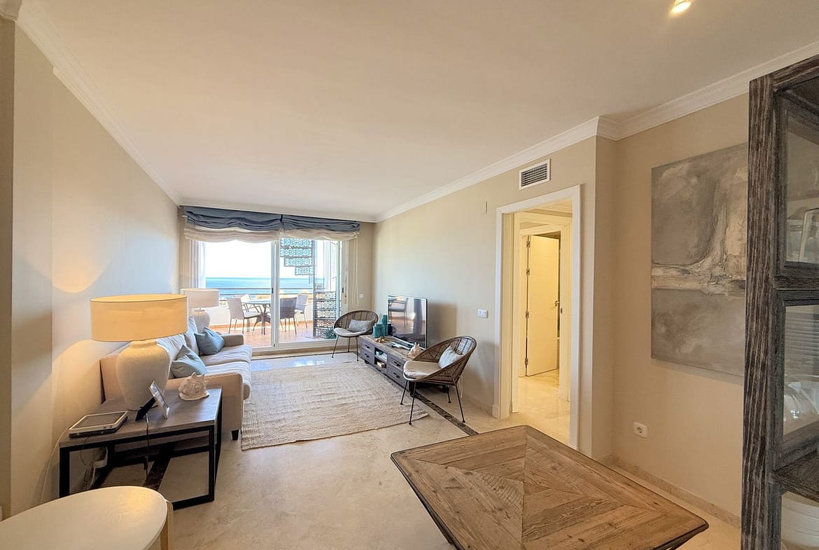 The property boasts truly spectacular views stretching along the entire coastline. As soon as you step inside, the abundant natural light and stunning Mediterranean blue become the main feature, thanks to large windows that fill each space with brightness and a serene atmosphere. It consists of two bedrooms and two bathrooms arranged on one level, along with a lovely terrace perfect for relaxing outdoors.