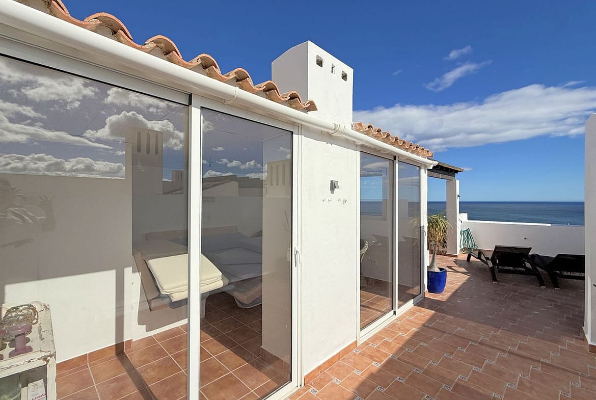 Discover an exclusive penthouse located in Manilva Costa, just 500 meters from beautiful fine-sand beaches where you can enjoy the sea and access the charming seafront promenade leading to the renowned Puerto de La Duquesa within a few minutes on foot. The area offers a wide range of amenities, including supermarkets, restaurants, gyms and various shops, ensuring comfort throughout the year.